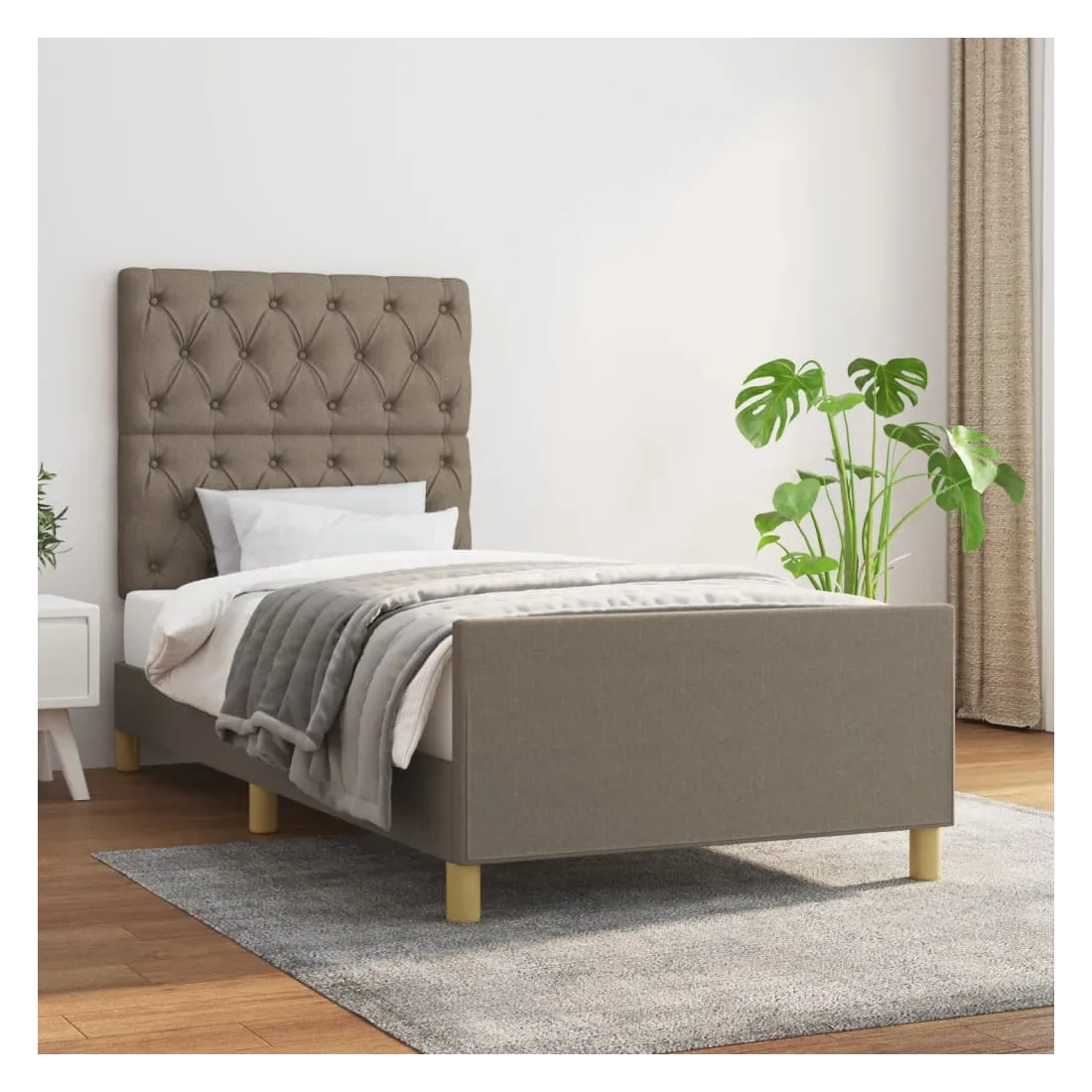 Obtenez une meilleure nuit de sommeil reposante grâce à ce cadre de lit avec tête de lit ! Il est un supplément accueillant à toute chambre à coucher. Tissu durable : le tissu présente un aspect simple et épuré, et il est respirant et durable.Hauteur réglable : la tête de lit est réglable en hauteur selon vos préférences.Pieds de soutien : le lit est soutenu par des pieds robustes, qui assurent sa stabilité, sa sécurité et sa fermeté.Lattes de contreplaqué : les lattes de contreplaqué assurent une bonne répartition du poids, garantissant que le matelas reste en place à chaque torsion de votre corps pendant le sommeil.Excellent soutien : la tête de lit vous offre un excellent soutien du dos lorsque vous êtes assis dans votre lit pour lire ou regarder la télévision. Remarque :La livraison comprend uniquement un cadre de lit. Le matelas n'est pas inclus. Vous pouvez consulter notre boutique pour trouver les matelas assortis.Chaque produit est livré avec un manuel de montage dans la boîte pour un montage facile.