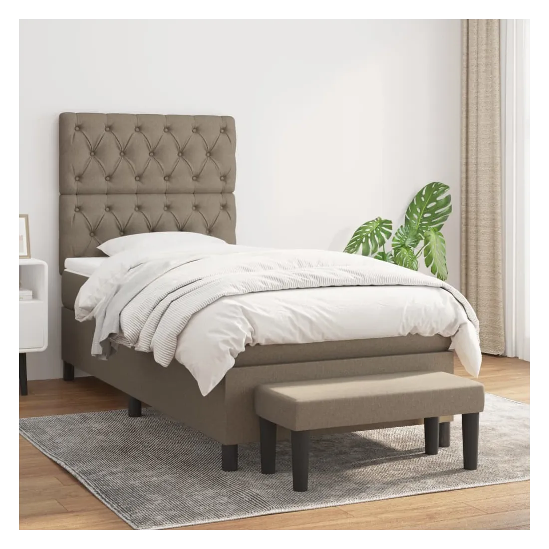 Utilisez ce lit à sommier pour profiter d'une nuit de sommeil réparatrice ! Il vous offre une relaxation maximale et un sommeil agréable. Tissu durable : le tissu présente un aspect simple et épuré, et il est respirant et durable.Tête de lit pratique : la tête de lit est réglable en hauteur selon vos préférences. La tête de lit vous offre un excellent soutien du dos lorsque vous êtes assis dans votre lit pour lire ou regarder la télévision.Matelas à ressorts ensachés : le ressort ensaché individuel intégré est connu pour sa très haute qualité tout en assurant un haut niveau de durabilité et d'adaptabilité. Il peut absorber efficacement le bruit et les chocs causés par les sauts et les rotations.Support moyen-dur : ce matelas de lit offre une stabilité accrue et juste le niveau de fermeté sans sacrifier le confort. Il est donc idéal pour les personnes qui dorment sur le dos ou sur le ventre.Protège-matelas doux pour la peau : le protège-matelas est recouvert d'un tissu résistant et doux pour la peau, ce qui le rend souple et confortable.Banc multifonctionnel : ce banc peut servir de siège supplémentaire dans votre maison. Il peut également être utilisé comme banc de bout de lit. Remarque :Pour des raisons d'hygiène, le matelas ne peut pas être retourné si l'emballage est retiré ou ouvert.Chaque produit est livré avec un manuel de montage dans la boîte pour un montage facile.