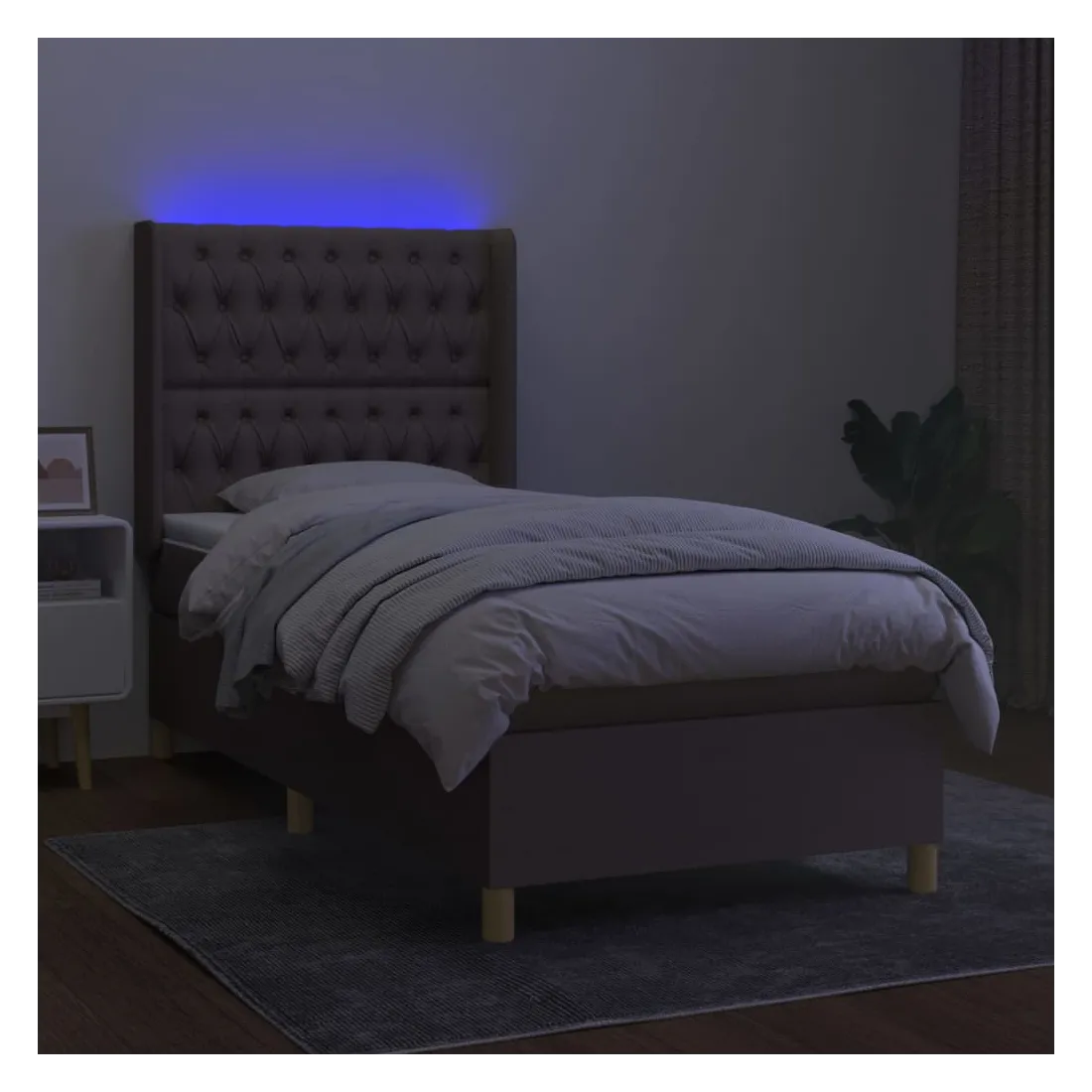 Utilisez ce sommier tapissier avec matelas et LED pour profiter d'un sommeil réparateur ! C'est le point central de votre chambre à coucher. Tissu durable : le tissu présente un aspect simple et épuré, et il est respirant et durable.Tête de lit pratique : la tête de lit est réglable en hauteur selon vos préférences. La tête de lit vous offre un excellent soutien du dos lorsque vous êtes assis dans votre lit pour lire ou regarder la télévision.Bande LED colorée : apportez de l'éclairage dans l'obscurité avec des lumières LED colorées !Matelas à ressorts ensachés : le ressort ensaché individuel intégré est connu pour sa très haute qualité tout en assurant un haut niveau de durabilité et d'adaptabilité. Il peut absorber efficacement le bruit et les chocs causés par les sauts et les rotations.Protège-matelas doux pour la peau : le protège-matelas est recouvert d'un tissu résistant et doux pour la peau, ce qui le rend souple et confortable. Remarque :Pour des raisons d'hygiène, le matelas ne peut pas être retourné si l'emballage est retiré ou ouvert.Seule la partie avec un symbole de ciseaux peut être coupée et seule la partie avec l'USB continuera à fonctionner comme avant.Chaque produit est livré avec un manuel de montage dans la boîte pour un montage facile.Ce produit est doté d'un connecteur USB, mais la source d'alimentation certifiée de USB 5V n'est pas incluse.