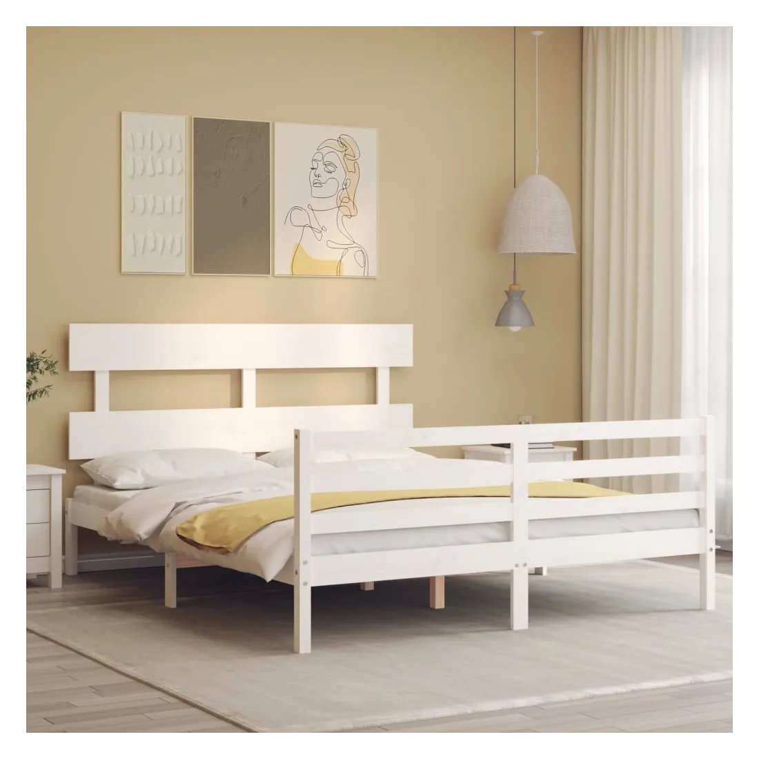 Profitez d'une bonne nuit de sommeil dans ce cadre de lit en bois ! Il sera un supplément pratique et décoratif à votre intérieur. Matériau durable : le bois de pin massif est un matériau naturel magnifique. Le bois de pin a un grain droit et les nœuds donnent au matériau son aspect caractéristique et rustique. Fabriqué en pin massif, ce lit est robuste et durable.Lattes en contreplaqué : les lattes en contreplaqué assurent une bonne répartition du poids, garantissant à votre matelas le soutien et la respirabilité dont il a tant besoin.Tête de lit et pied de lit fonctionnels : la tête et le pied de lit du lit en bois peuvent maintenir votre matelas en place. De plus, la tête de lit vous offre un excellent soutien du dos lorsque vous vous asseyez dans le lit pour lire ou regarder la télévision. Bon à savoir : Un matelas n'est pas inclus avec ce lit. Nous offrons une sélection variée de matelas. Vous pouvez consulter notre boutique pour trouver un matelas assorti.