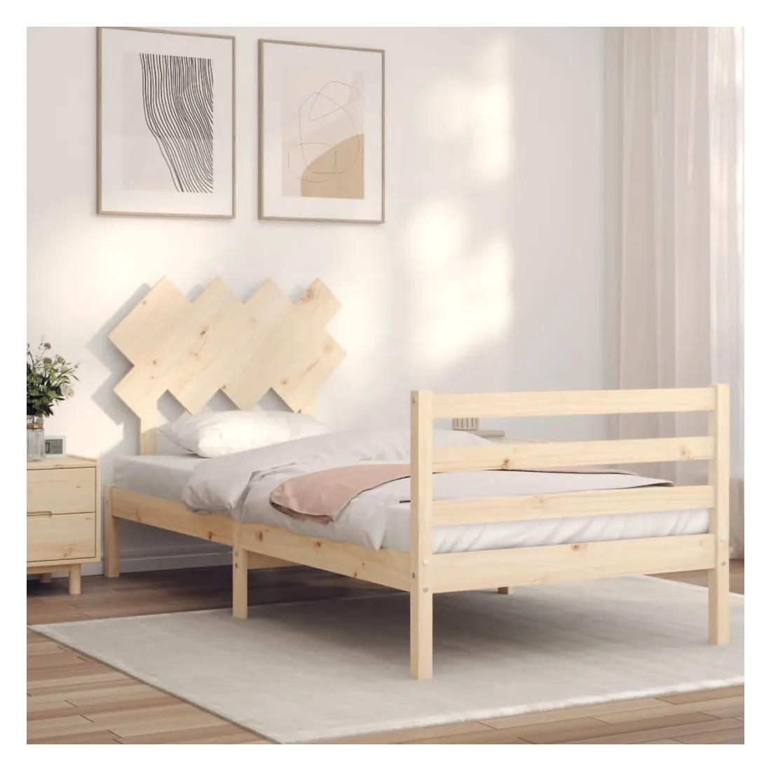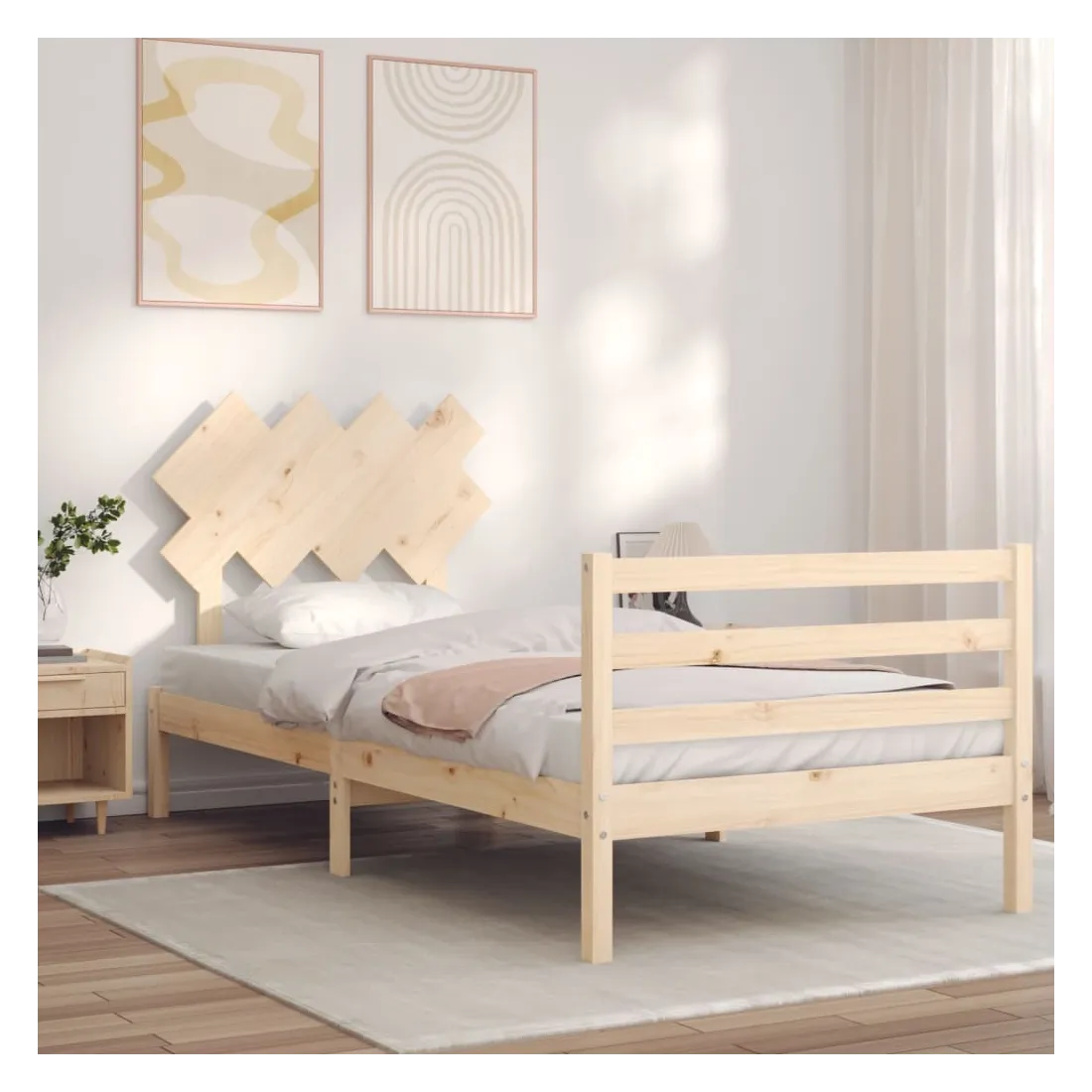 Profitez d'une bonne nuit de sommeil dans ce cadre de lit en bois ! Il sera un supplément pratique et décoratif à votre intérieur. Matériau durable : le bois de pin massif est un matériau naturel magnifique. Le bois de pin a un grain droit et les nœuds donnent au matériau son aspect caractéristique et rustique. Fabriqué en pin massif, ce lit est robuste et durable.Lattes en contreplaqué : les lattes en contreplaqué assurent une bonne répartition du poids, garantissant à votre matelas le soutien et la respirabilité dont il a tant besoin.Tête de lit et pied de lit fonctionnels : la tête et le pied de lit du lit en bois peuvent maintenir votre matelas en place. De plus, la tête de lit vous offre un excellent soutien du dos lorsque vous vous asseyez dans le lit pour lire ou regarder la télévision. Bon à savoir : Un matelas n'est pas inclus avec ce lit. Nous offrons une sélection variée de matelas. Vous pouvez consulter notre boutique pour trouver un matelas assorti.