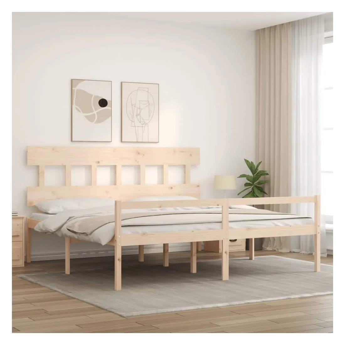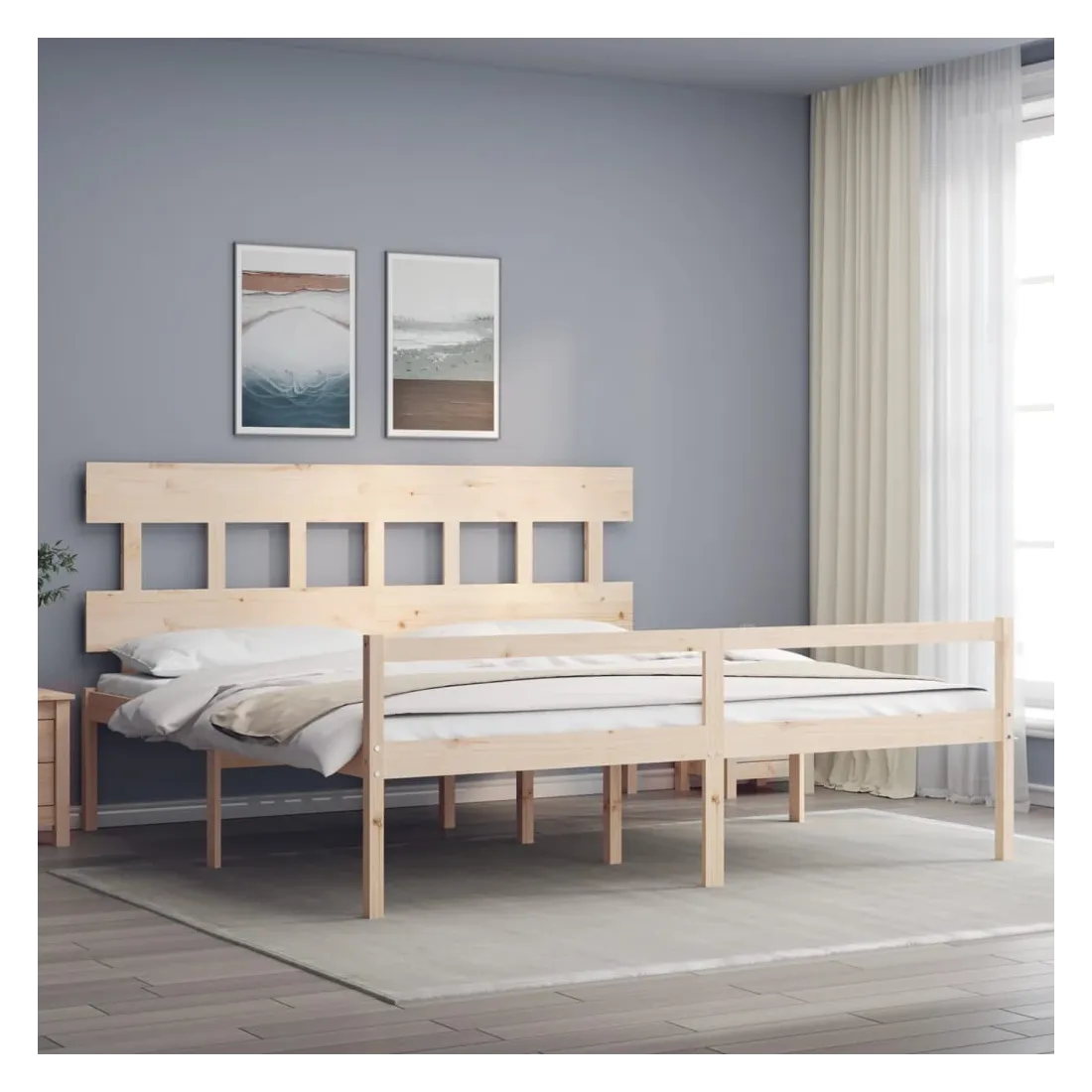 Profitez d'une bonne nuit de sommeil dans ce lit pour personne âgée en bois! Il sera un supplément pratique et décoratif à votre intérieur. Bois de pin massif : le bois de pin massif est un matériau naturel magnifique. Traitez la surface avec de l'huile, de la cire, de la laque ou une finition vitrée pour obtenir une surface plus résistante et un nettoyage facile. Le bois de pin a un grain droit et les nœuds donnent au matériau son aspect caractéristique et rustique.Adapté aux personnes âgées : le cadre de lit est facile à monter et à descendre pour les personnes âgées grâce à sa hauteur d'assise de 45 cm.Espace de rangement supplémentaire : le lit dispose d'un espace supplémentaire en dessous pour ranger des boîtes afin d'organiser vos vêtements, jouets ou couettes.Lattes robustes : les lattes de contreplaqué assurent une bonne répartition du poids, garantissant que le matelas reste en place à chaque torsion de votre corps pendant le sommeil.Tête de lit et pied de lit fonctionnels : la tête et le pied de lit du lit en bois peuvent maintenir votre matelas en place. De plus, la tête de lit vous offre un excellent soutien du dos lorsque vous vous asseyez dans le lit pour lire ou regarder la télévision. Bon à savoir :Un matelas n'est pas inclus avec ce lit. Nous offrons une sélection variée de matelas. Vous pouvez consulter notre boutique pour trouver un matelas assorti.