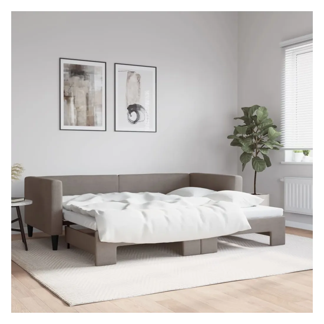 Ce lit de repos 2 en 1 avec lit gigogne, servant à la fois de canapé et de lit, constitue un supplément pratique et accrocheur à votre salon ou chambre à coucher. Lit de repos polyvalent : le canapé-lit fonctionne comme un canapé pendant la journée et se transforme facilement en lit double la nuit en retirant le lit gigogne, offrant une solution pratique pour accueillir des invités et maximiser l'espace. Tissu durable : lit d'appoint est en tissu. Le tissu présente un aspect simple et épuré tout en restant respirant et durable. Construction solide : la structure en bois et en métal du lit assure robustesse et stabilité. Bon à savoir :Les matelas ne sont pas inclus avec ce lit de repos. Nous proposons une sélection variée de matelas. Vous pouvez consulter notre boutique pour les matelas assortis.