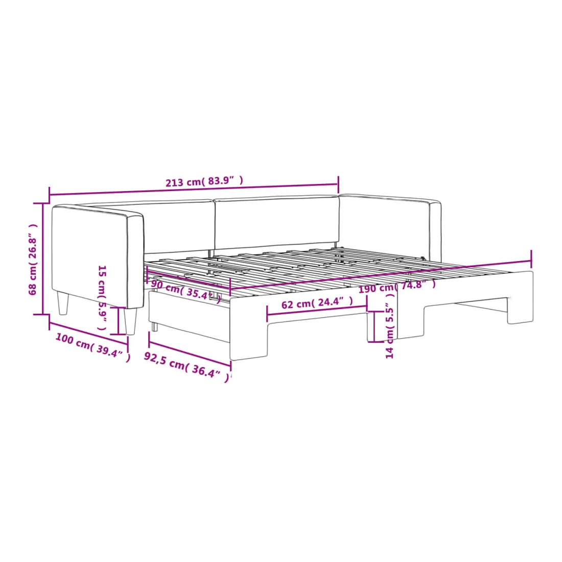 Ce lit de repos 2 en 1 avec lit gigogne, servant à la fois de canapé et de lit, constitue un supplément pratique et accrocheur à votre salon ou chambre à coucher. Lit de repos polyvalent : le canapé-lit fonctionne comme un canapé pendant la journée et se transforme facilement en lit double la nuit en retirant le lit gigogne, offrant une solution pratique pour accueillir des invités et maximiser l'espace. Tissu durable : lit d'appoint est en tissu. Le tissu présente un aspect simple et épuré tout en restant respirant et durable. Construction solide : la structure en bois et en métal du lit assure robustesse et stabilité. Bon à savoir :Les matelas ne sont pas inclus avec ce lit de repos. Nous proposons une sélection variée de matelas. Vous pouvez consulter notre boutique pour les matelas assortis.