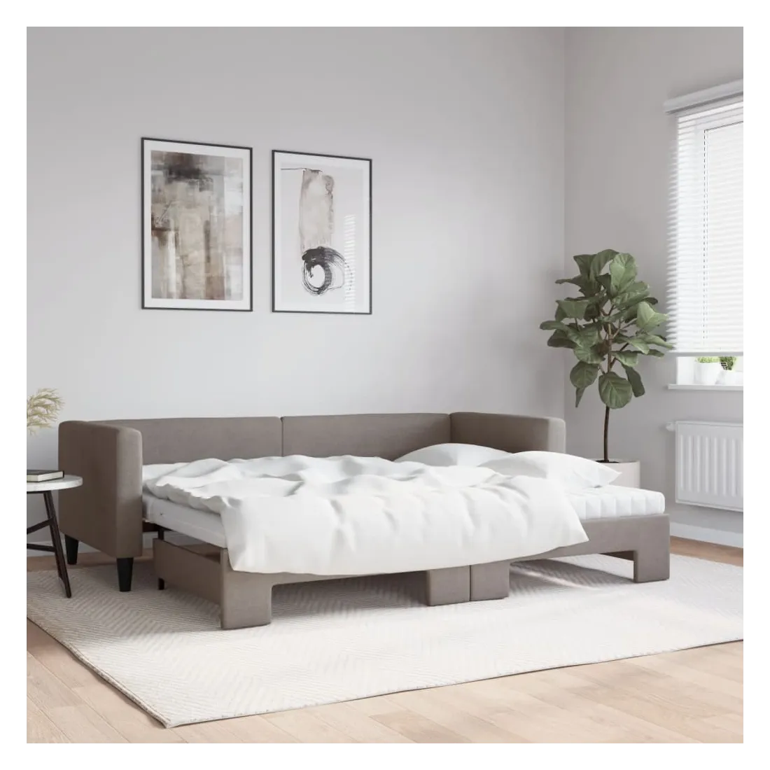 Ce lit de repos 2 en 1 avec lit gigogne, servant à la fois de canapé et de lit, constitue un supplément pratique et accrocheur à votre salon ou chambre à coucher. Lit de repos polyvalent : le canapé-lit fonctionne comme un canapé pendant la journée et se transforme facilement en lit double la nuit en retirant le lit gigogne, offrant une solution pratique pour accueillir des invités et maximiser l'espace. Matelas en mousse confortable : ce lit est fourni avec deux matelas en mousse pour un soutien maximal et un confort optimal. Tissu durable et construction solide : ce canapé-lit a une structure robuste en bois et en métal et est recouvert d'un tissu durable et confortable.