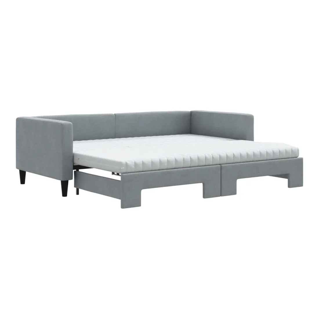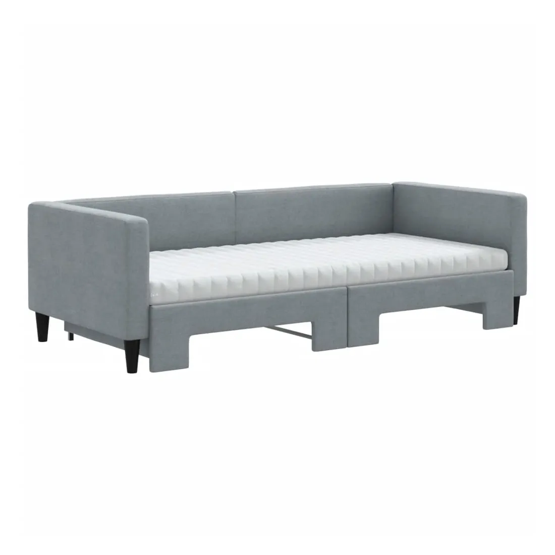Ce lit de repos 2 en 1 avec lit gigogne, servant à la fois de canapé et de lit, constitue un supplément pratique et accrocheur à votre salon ou chambre à coucher. Lit de repos polyvalent : le canapé-lit fonctionne comme un canapé pendant la journée et se transforme facilement en lit double la nuit en retirant le lit gigogne, offrant une solution pratique pour accueillir des invités et maximiser l'espace. Matelas en mousse confortable : ce lit est fourni avec deux matelas en mousse pour un soutien maximal et un confort optimal. Tissu durable et construction solide : ce canapé-lit a une structure robuste en bois et en métal et est recouvert d'un tissu durable et confortable.