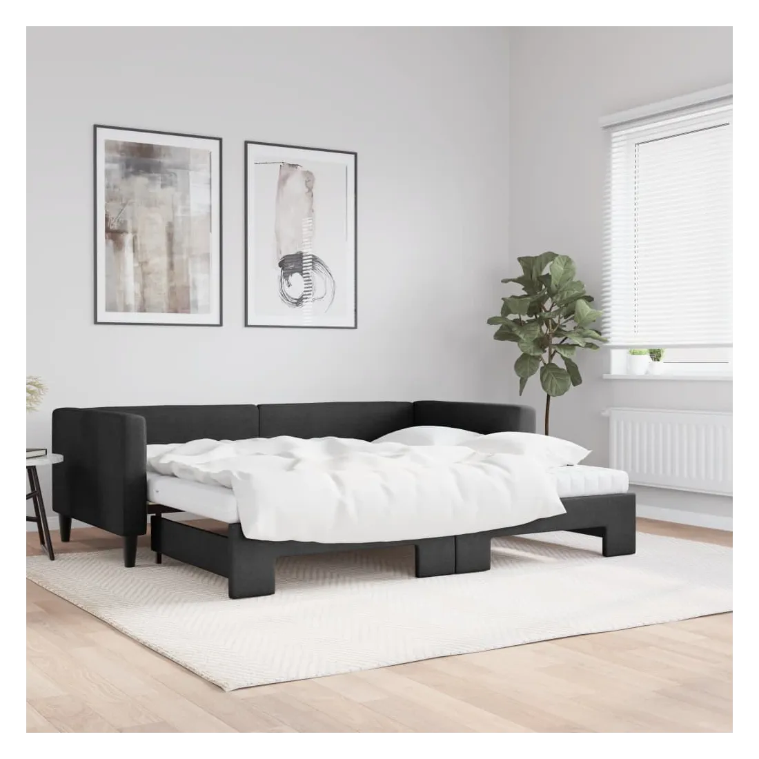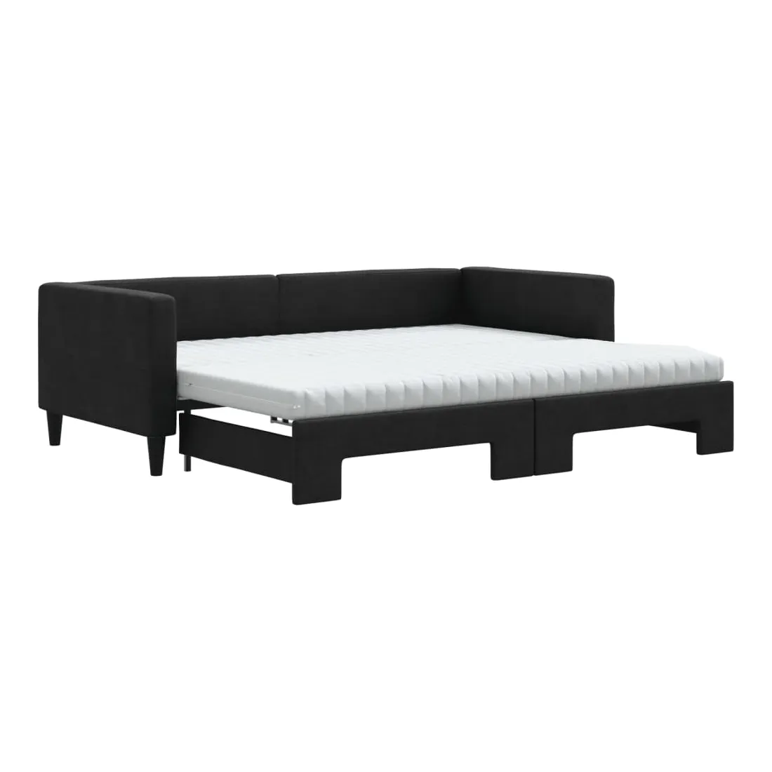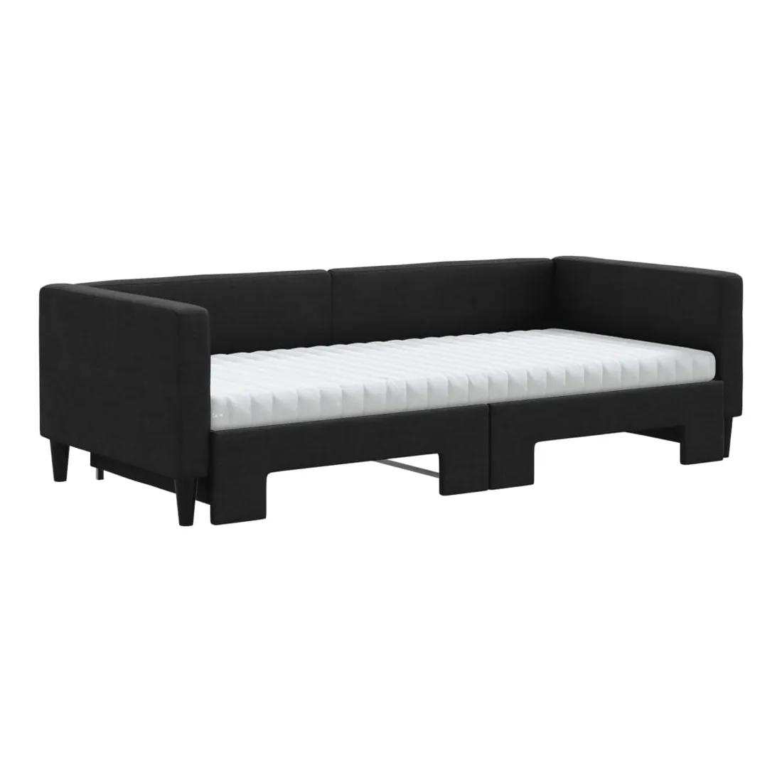 Ce lit de repos 2 en 1 avec lit gigogne, servant à la fois de canapé et de lit, constitue un supplément pratique et accrocheur à votre salon ou chambre à coucher. Lit de repos polyvalent : le canapé-lit fonctionne comme un canapé pendant la journée et se transforme facilement en lit double la nuit en retirant le lit gigogne, offrant une solution pratique pour accueillir des invités et maximiser l'espace. Matelas en mousse confortable : ce lit est fourni avec deux matelas en mousse pour un soutien maximal et un confort optimal. Tissu durable et construction solide : ce canapé-lit a une structure robuste en bois et en métal et est recouvert d'un tissu durable et confortable.