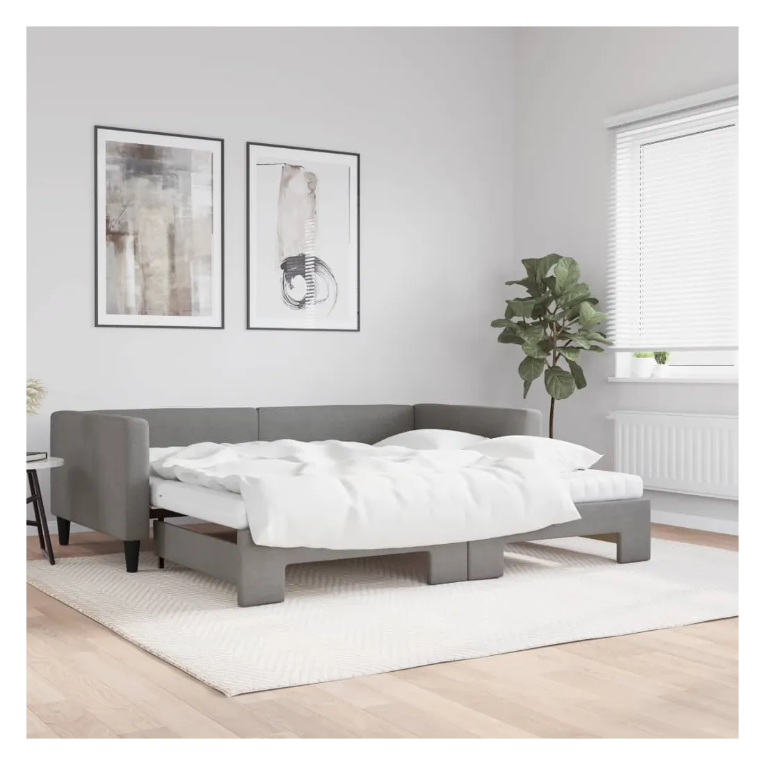 Ce lit de repos 2 en 1 avec lit gigogne, servant à la fois de canapé et de lit, constitue un supplément pratique et accrocheur à votre salon ou chambre à coucher. Lit de repos polyvalent : le canapé-lit fonctionne comme un canapé pendant la journée et se transforme facilement en lit double la nuit en retirant le lit gigogne, offrant une solution pratique pour accueillir des invités et maximiser l'espace. Matelas en mousse confortable : ce lit est fourni avec deux matelas en mousse pour un soutien maximal et un confort optimal. Tissu durable et construction solide : ce canapé-lit a une structure robuste en bois et en métal et est recouvert d'un tissu durable et confortable.