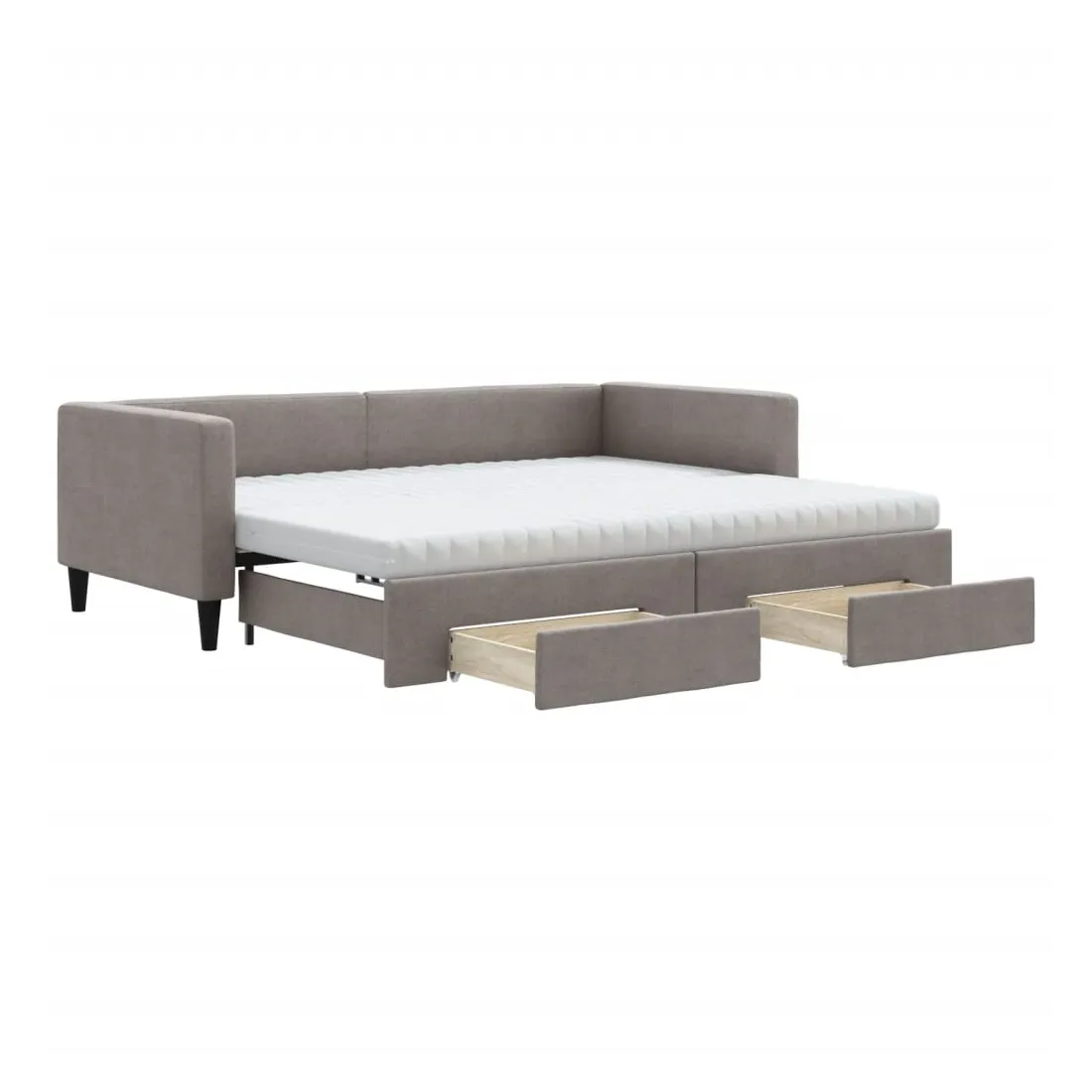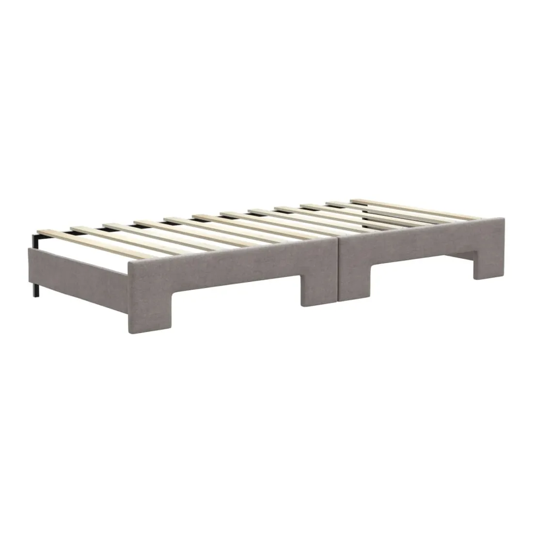 Ce lit de repos 2 en 1 avec lit gigogne, servant à la fois de canapé et de lit, constitue un supplément pratique et accrocheur à votre salon ou chambre à coucher. Lit de repos polyvalent : le canapé-lit fonctionne comme un canapé pendant la journée et se transforme facilement en lit double la nuit en retirant le lit gigogne, offrant une solution pratique pour accueillir des invités et maximiser l'espace. Grand espace de rangement : ce lit d'appoint dispose de deux tiroirs à roulettes qui offrent suffisamment d'espace pour ranger vos vêtements, chaussettes, jouets, coussins, etc. Matelas en mousse confortable : ce lit est fourni avec deux matelas en mousse pour un soutien maximal et un confort optimal. Tissu durable et construction solide : ce canapé-lit a une structure robuste en bois et en métal et est recouvert d'un tissu durable et confortable.