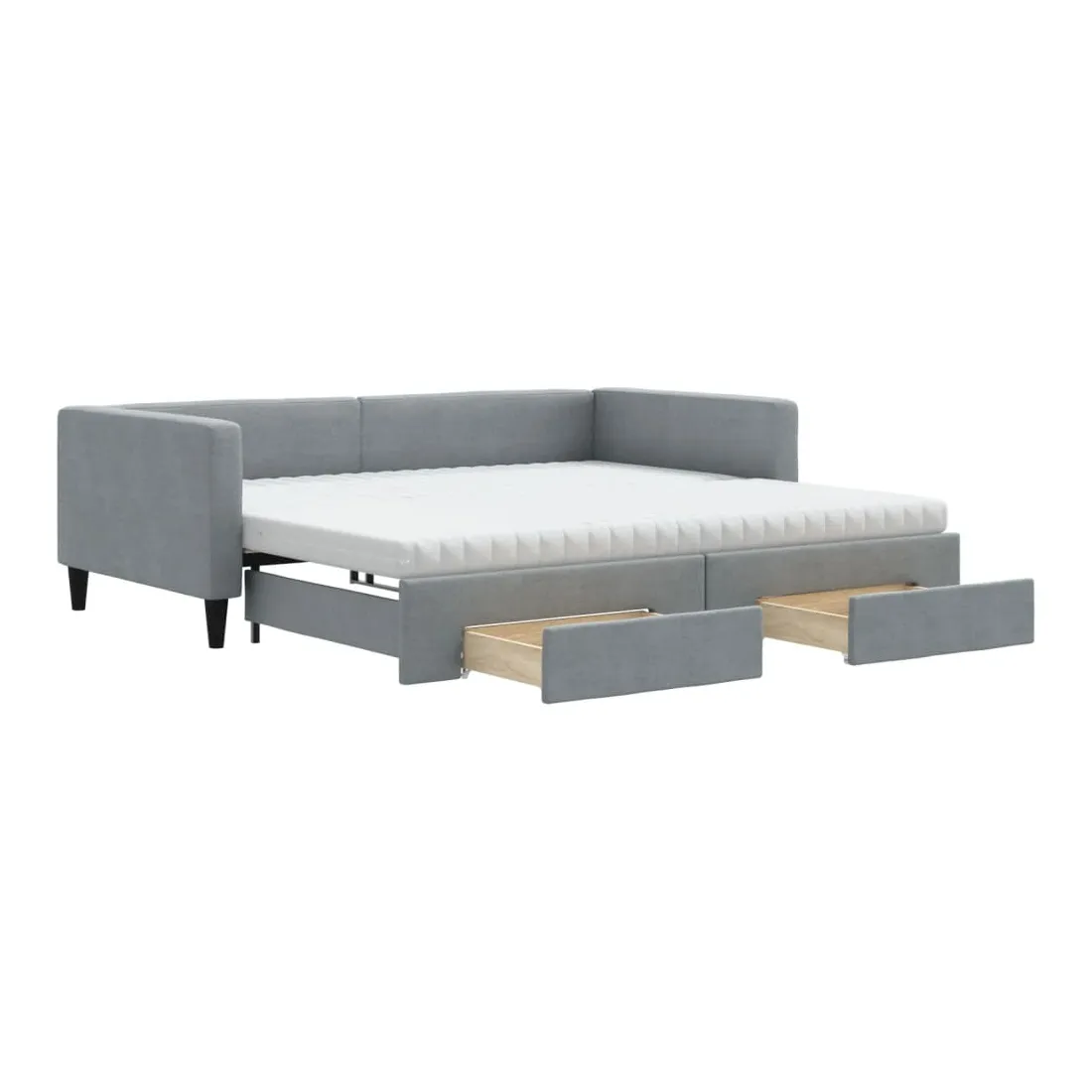 Ce lit de repos 2 en 1 avec lit gigogne, servant à la fois de canapé et de lit, constitue un supplément pratique et accrocheur à votre salon ou chambre à coucher. Lit de repos polyvalent : le canapé-lit fonctionne comme un canapé pendant la journée et se transforme facilement en lit double la nuit en retirant le lit gigogne, offrant une solution pratique pour accueillir des invités et maximiser l'espace. Grand espace de rangement : ce lit d'appoint dispose de deux tiroirs à roulettes qui offrent suffisamment d'espace pour ranger vos vêtements, chaussettes, jouets, coussins, etc. Matelas en mousse confortable : ce lit est fourni avec deux matelas en mousse pour un soutien maximal et un confort optimal. Tissu durable et construction solide : ce canapé-lit a une structure robuste en bois et en métal et est recouvert d'un tissu durable et confortable.