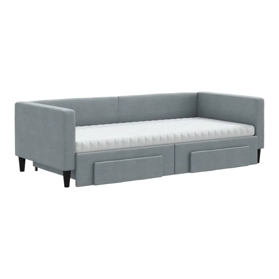 Ce lit de repos 2 en 1 avec lit gigogne, servant à la fois de canapé et de lit, constitue un supplément pratique et accrocheur à votre salon ou chambre à coucher. Lit de repos polyvalent : le canapé-lit fonctionne comme un canapé pendant la journée et se transforme facilement en lit double la nuit en retirant le lit gigogne, offrant une solution pratique pour accueillir des invités et maximiser l'espace. Grand espace de rangement : ce lit d'appoint dispose de deux tiroirs à roulettes qui offrent suffisamment d'espace pour ranger vos vêtements, chaussettes, jouets, coussins, etc. Matelas en mousse confortable : ce lit est fourni avec deux matelas en mousse pour un soutien maximal et un confort optimal. Tissu durable et construction solide : ce canapé-lit a une structure robuste en bois et en métal et est recouvert d'un tissu durable et confortable.