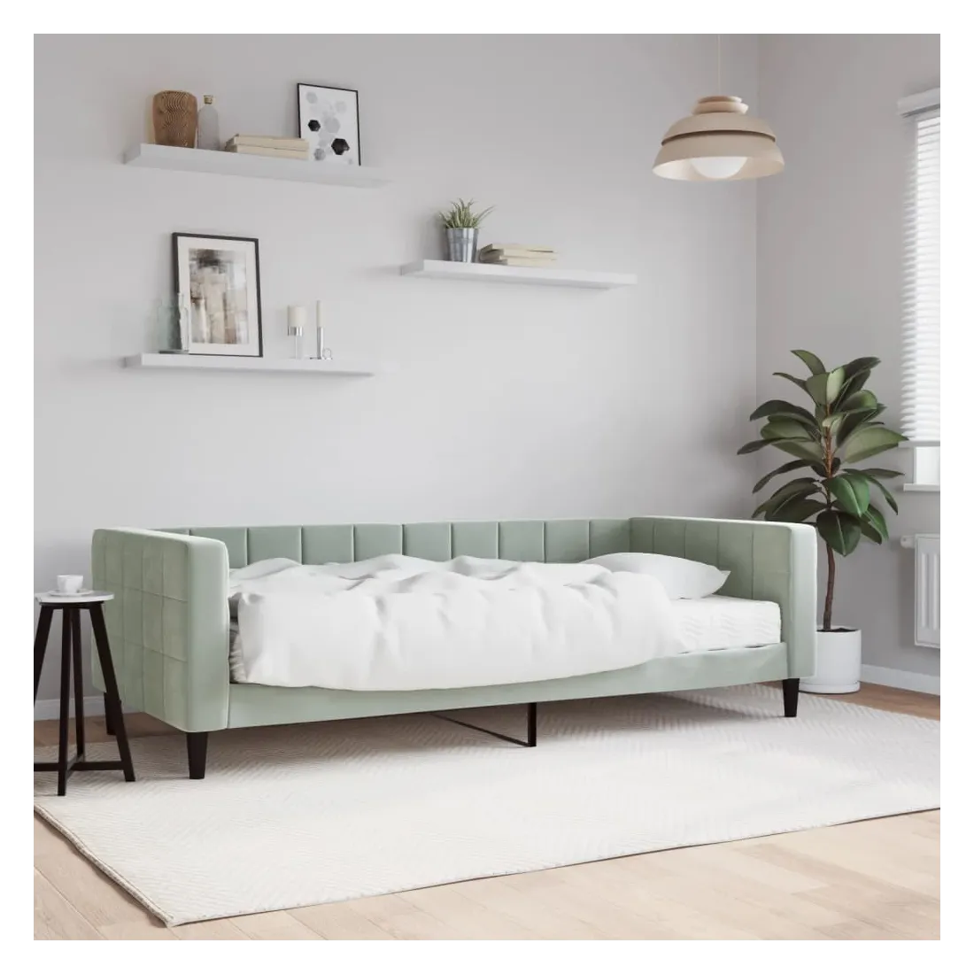 Ce lit de repos 2 en 1 avec matelas, servant à la fois de canapé et de lit, constitue un supplément pratique et accrocheur à votre salon ou votre chambre à coucher. Lit de jour polyvalent : le canapé-lit peut être utilisé comme canapé pendant la journée, ou comme lit pendant la nuit pour offrir une solution rapide pour accueillir des invités pour la nuit.Matelas en mousse confortable : ce lit est fourni avec un matelas en mousse pour un soutien maximal et un confort optimal.Velours doux et construction solide : ce canapé-lit a un cadre robuste en bois et en métal et est recouvert de velours doux et confortable.Design moderne : le canapé-lit a un design moderne qui présente des lignes épurées, un aspect minimaliste, ainsi que de la lumière naturelle, et ajoutera un style moderne à votre intérieur !