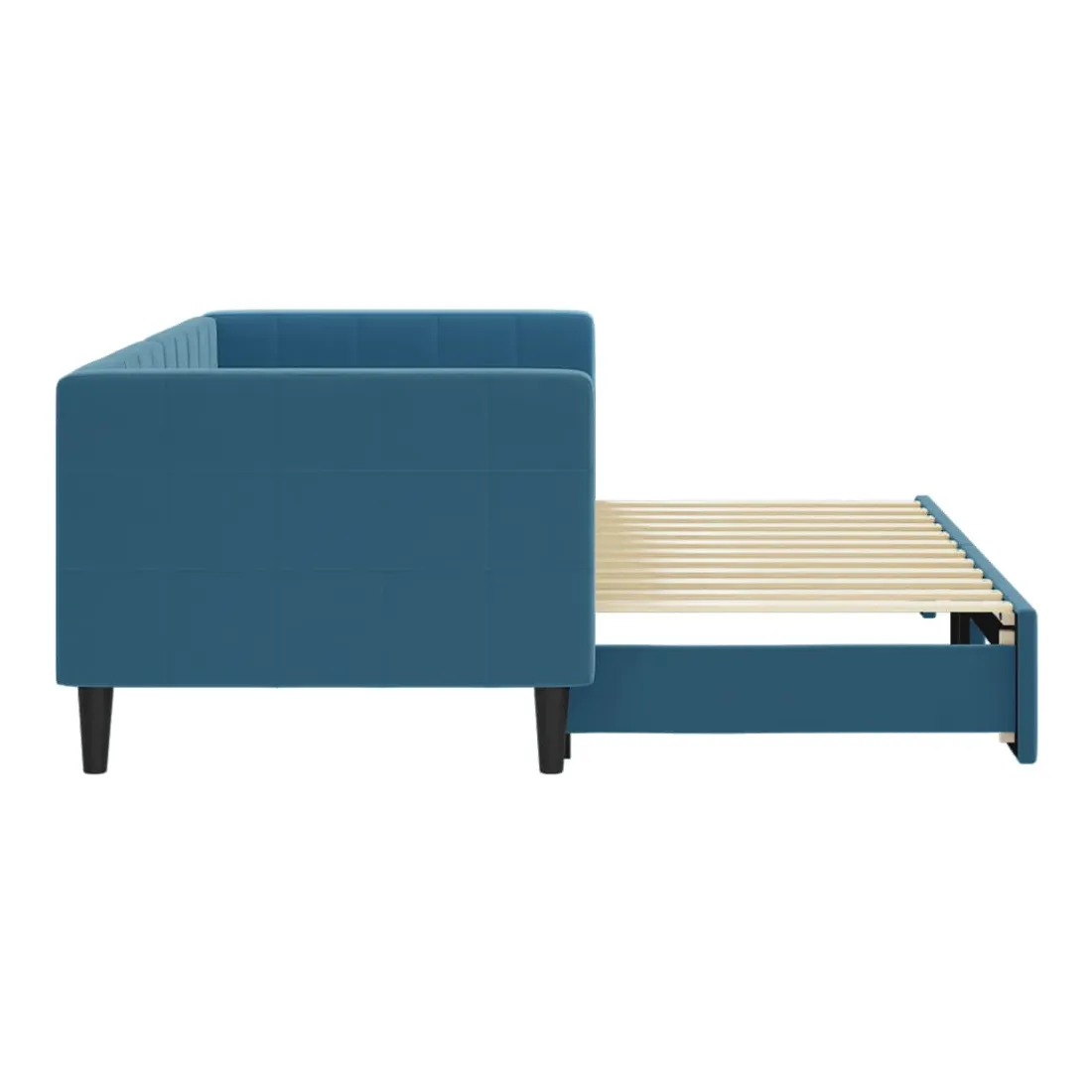 Ce lit de repos 2 en 1 avec lit gigogne, servant à la fois de canapé et de lit, constitue un supplément pratique et accrocheur à votre salon ou chambre à coucher. Lit de repos polyvalent : le canapé-lit fonctionne comme un canapé pendant la journée et se transforme facilement en lit double la nuit en retirant le lit gigogne, offrant une solution pratique pour accueillir des invités et maximiser l'espace.Velours doux et construction solide : ce canapé-lit a un cadre robuste en bois et en métal et est recouvert de velours doux et confortable.Design moderne : le canapé-lit a un design moderne qui présente des lignes épurées, un aspect minimaliste, ainsi que de la lumière naturelle, et ajoutera un style moderne à votre intérieur ! Bon à savoir :Les matelas ne sont pas inclus avec ce lit. Nous proposons une sélection variée de matelas. Vous pouvez consulter notre boutique pour trouver les matelas assortis.