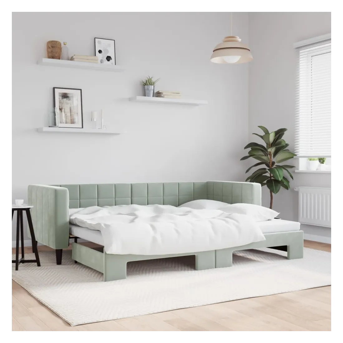 Ce lit de repos 2 en 1 avec lit gigogne, servant à la fois de canapé et de lit, constitue un supplément pratique et accrocheur à votre salon ou chambre à coucher. Lit de repos polyvalent : le canapé-lit fonctionne comme un canapé pendant la journée et se transforme facilement en lit double la nuit en retirant le lit gigogne, offrant une solution pratique pour accueillir des invités et maximiser l'espace.Velours doux et construction solide : ce canapé-lit a un cadre robuste en bois et en métal et est recouvert de velours doux et confortable.Design moderne : le canapé-lit a un design moderne qui présente des lignes épurées, un aspect minimaliste, ainsi que de la lumière naturelle, et ajoutera un style moderne à votre intérieur ! Bon à savoir :Les matelas ne sont pas inclus avec ce lit. Nous proposons une sélection variée de matelas. Vous pouvez consulter notre boutique pour trouver les matelas assortis.