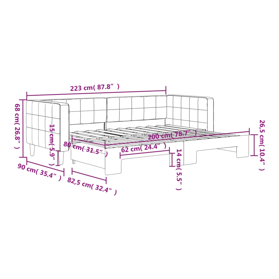 Ce lit de repos 2 en 1 avec lit gigogne, servant à la fois de canapé et de lit, constitue un supplément pratique et accrocheur à votre salon ou chambre à coucher. Lit de repos polyvalent : le canapé-lit fonctionne comme un canapé pendant la journée et se transforme facilement en lit double la nuit en retirant le lit gigogne, offrant une solution pratique pour accueillir des invités et maximiser l'espace.Velours doux et construction solide : ce canapé-lit a un cadre robuste en bois et en métal et est recouvert de velours doux et confortable.Design moderne : le canapé-lit a un design moderne qui présente des lignes épurées, un aspect minimaliste, ainsi que de la lumière naturelle, et ajoutera un style moderne à votre intérieur ! Bon à savoir :Les matelas ne sont pas inclus avec ce lit. Nous proposons une sélection variée de matelas. Vous pouvez consulter notre boutique pour trouver les matelas assortis.