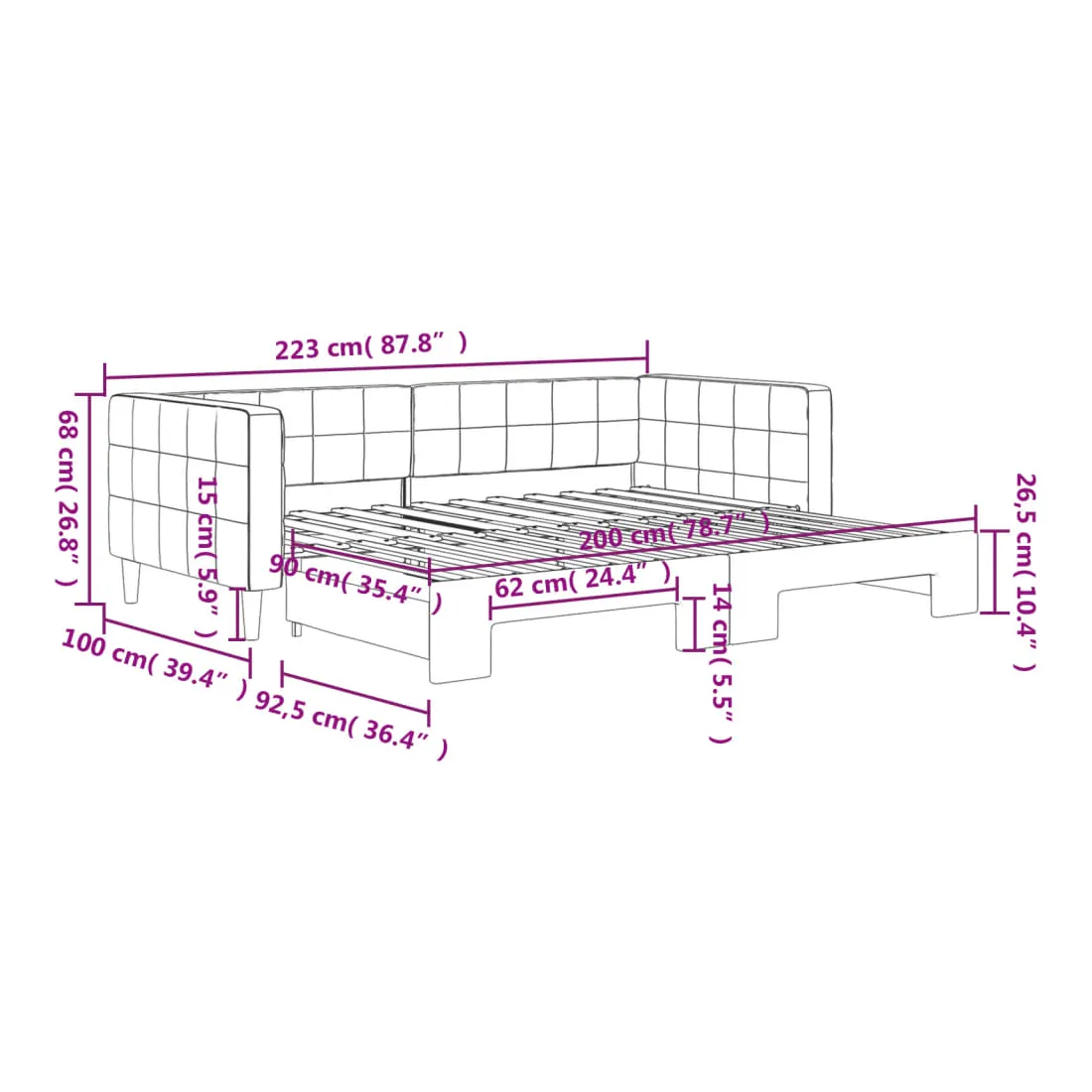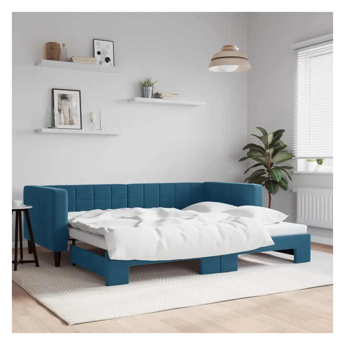 Ce lit de repos 2 en 1 avec lit gigogne, servant à la fois de canapé et de lit, constitue un supplément pratique et accrocheur à votre salon ou chambre à coucher. Lit de repos polyvalent : le canapé-lit fonctionne comme un canapé pendant la journée et se transforme facilement en lit double la nuit en retirant le lit gigogne, offrant une solution pratique pour accueillir des invités et maximiser l'espace.Velours doux et construction solide : ce canapé-lit a un cadre robuste en bois et en métal et est recouvert de velours doux et confortable.Design moderne : le canapé-lit a un design moderne qui présente des lignes épurées, un aspect minimaliste, ainsi que de la lumière naturelle, et ajoutera un style moderne à votre intérieur ! Bon à savoir :Les matelas ne sont pas inclus avec ce lit. Nous proposons une sélection variée de matelas. Vous pouvez consulter notre boutique pour trouver les matelas assortis.