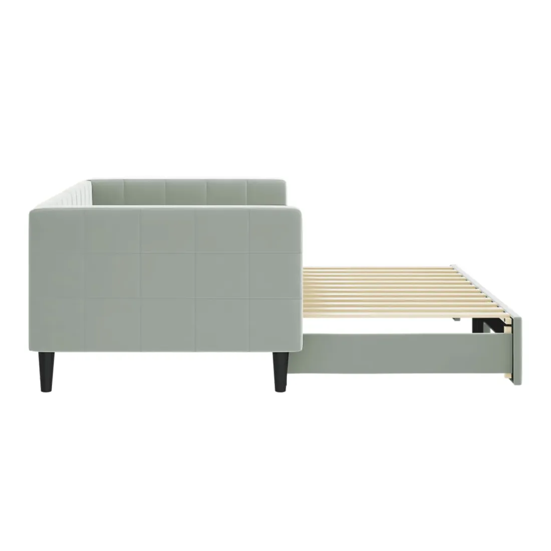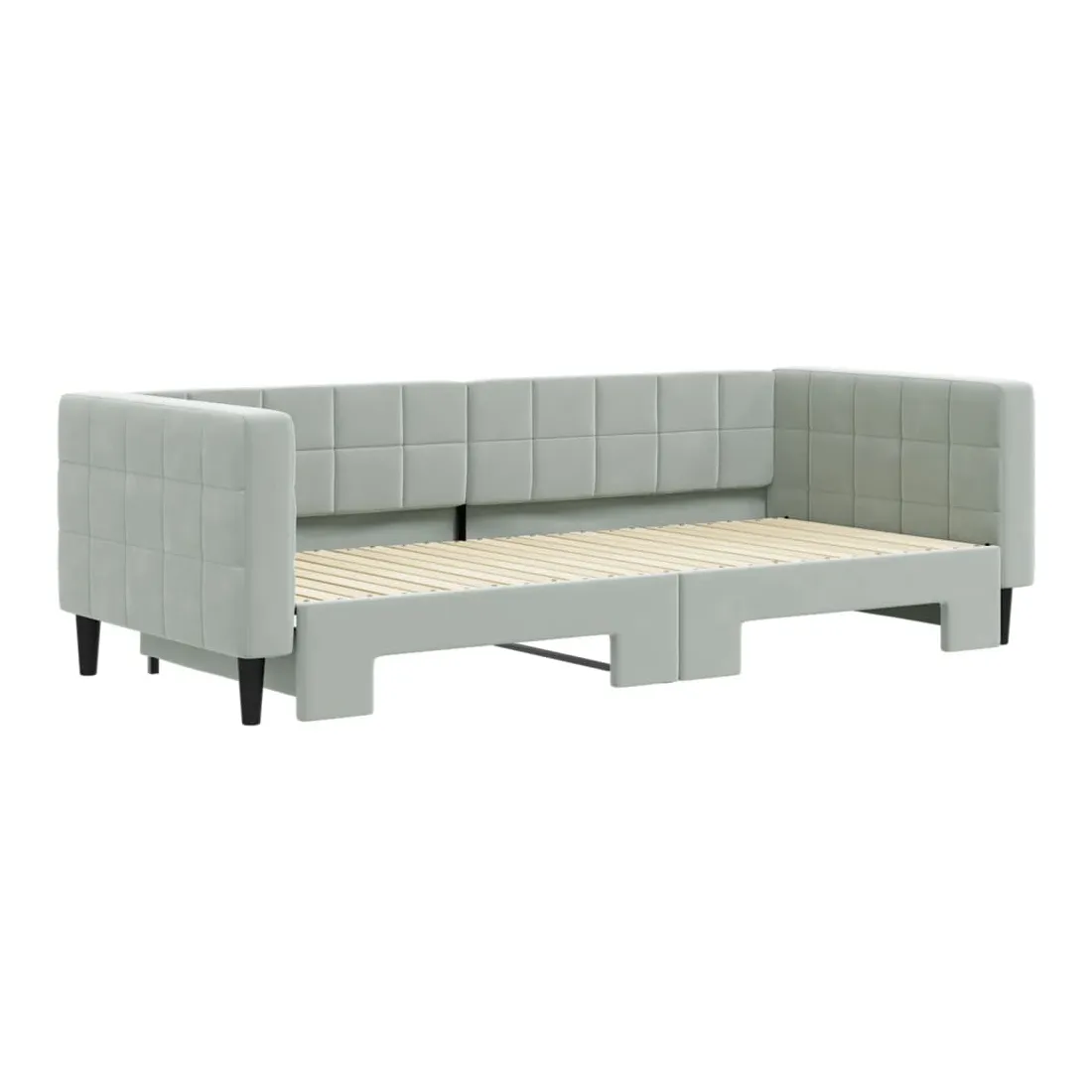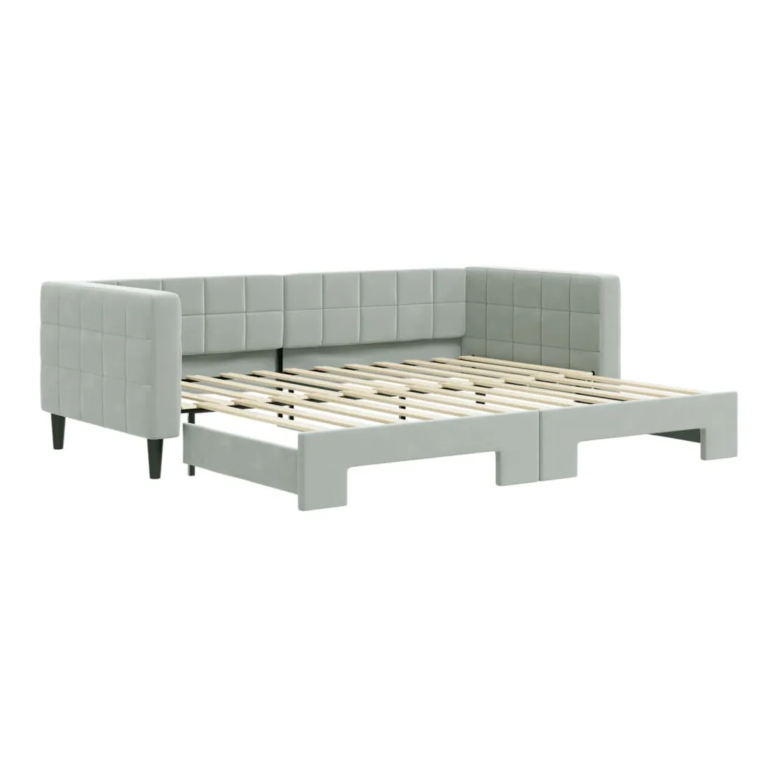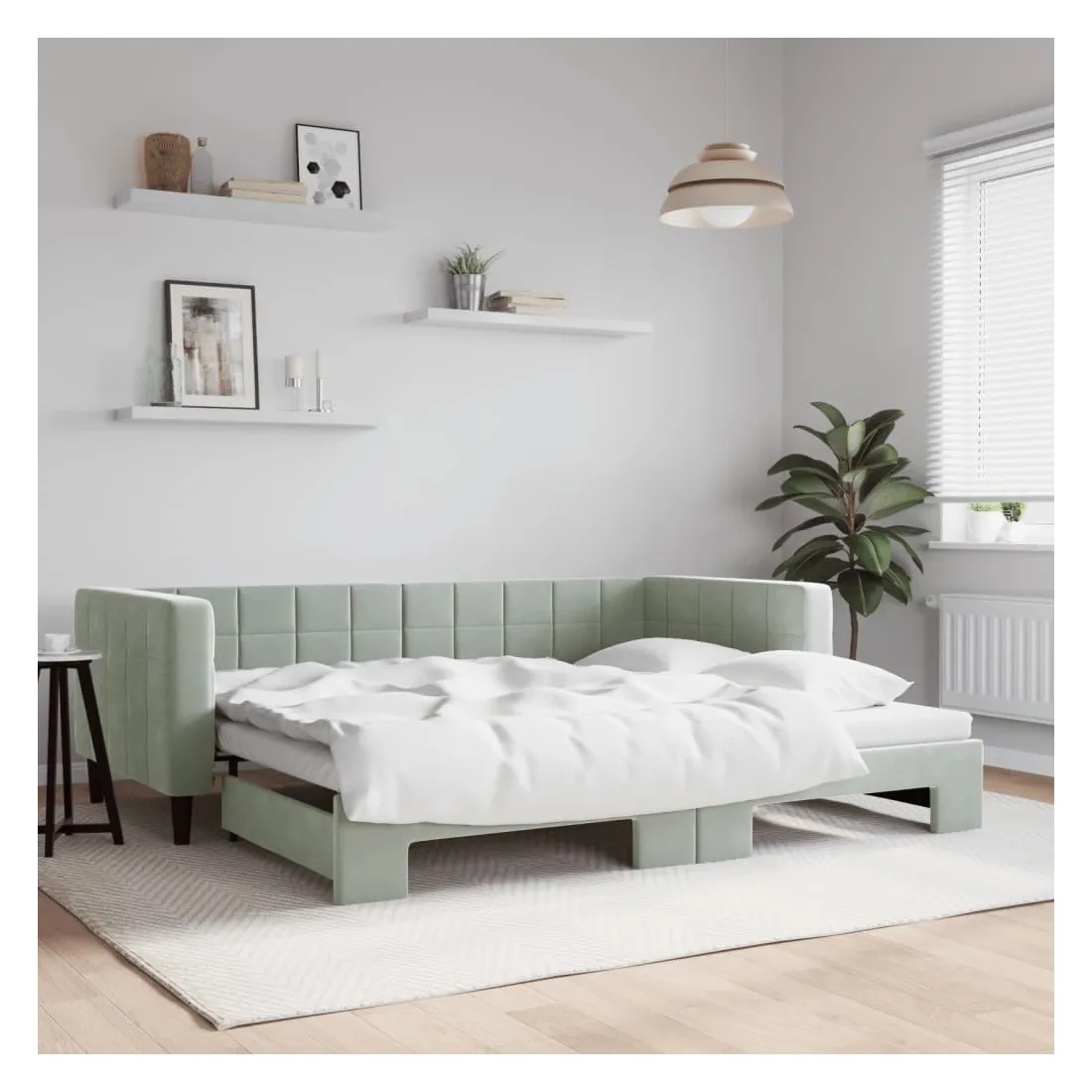 Ce lit de repos 2 en 1 avec lit gigogne, servant à la fois de canapé et de lit, constitue un supplément pratique et accrocheur à votre salon ou chambre à coucher. Lit de repos polyvalent : le canapé-lit fonctionne comme un canapé pendant la journée et se transforme facilement en lit double la nuit en retirant le lit gigogne, offrant une solution pratique pour accueillir des invités et maximiser l'espace.Velours doux et construction solide : ce canapé-lit a un cadre robuste en bois et en métal et est recouvert de velours doux et confortable.Design moderne : le canapé-lit a un design moderne qui présente des lignes épurées, un aspect minimaliste, ainsi que de la lumière naturelle, et ajoutera un style moderne à votre intérieur ! Bon à savoir :Les matelas ne sont pas inclus avec ce lit. Nous proposons une sélection variée de matelas. Vous pouvez consulter notre boutique pour trouver les matelas assortis.