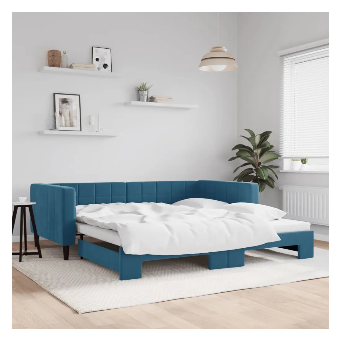 Ce lit de repos 2 en 1 avec lit gigogne, servant à la fois de canapé et de lit, constitue un supplément pratique et accrocheur à votre salon ou chambre à coucher. Lit de repos polyvalent : le canapé-lit fonctionne comme un canapé pendant la journée et se transforme facilement en lit double la nuit en retirant le lit gigogne, offrant une solution pratique pour accueillir des invités et maximiser l'espace.Velours doux et construction solide : ce canapé-lit a un cadre robuste en bois et en métal et est recouvert de velours doux et confortable.Design moderne : le canapé-lit a un design moderne qui présente des lignes épurées, un aspect minimaliste, ainsi que de la lumière naturelle, et ajoutera un style moderne à votre intérieur ! Bon à savoir :Les matelas ne sont pas inclus avec ce lit. Nous proposons une sélection variée de matelas. Vous pouvez consulter notre boutique pour trouver les matelas assortis.
