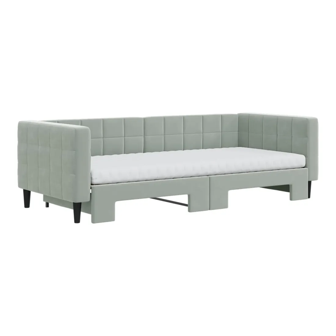 Ce lit de repos 2 en 1 avec lit gigogne, servant à la fois de canapé et de lit, constitue un supplément pratique et accrocheur à votre salon ou chambre à coucher. Lit de repos polyvalent : le canapé-lit fonctionne comme un canapé pendant la journée et se transforme facilement en lit double la nuit en retirant le lit gigogne, offrant une solution pratique pour accueillir des invités et maximiser l'espace.Matelas en mousse confortable : ce lit est fourni avec deux matelas en mousse pour un soutien maximal et un confort optimal.Velours doux et construction solide : ce canapé-lit a un cadre robuste en bois et en métal et est recouvert de velours doux et confortable.Design moderne : le canapé-lit a un design moderne qui présente des lignes épurées, un aspect minimaliste, ainsi que de la lumière naturelle, et ajoutera un style moderne à votre intérieur !