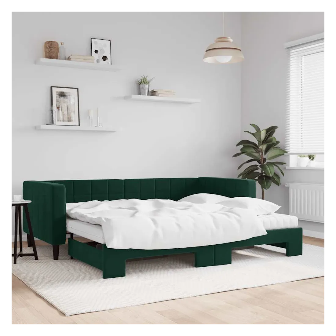 Ce lit de repos 2 en 1 avec lit gigogne, servant à la fois de canapé et de lit, constitue un supplément pratique et accrocheur à votre salon ou chambre à coucher. Lit de repos polyvalent : le canapé-lit fonctionne comme un canapé pendant la journée et se transforme facilement en lit double la nuit en retirant le lit gigogne, offrant une solution pratique pour accueillir des invités et maximiser l'espace.Matelas en mousse confortable : ce lit est fourni avec deux matelas en mousse pour un soutien maximal et un confort optimal.Velours doux et construction solide : ce canapé-lit a un cadre robuste en bois et en métal et est recouvert de velours doux et confortable.Design moderne : le canapé-lit a un design moderne qui présente des lignes épurées, un aspect minimaliste, ainsi que de la lumière naturelle, et ajoutera un style moderne à votre intérieur !