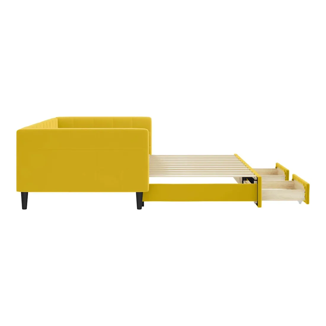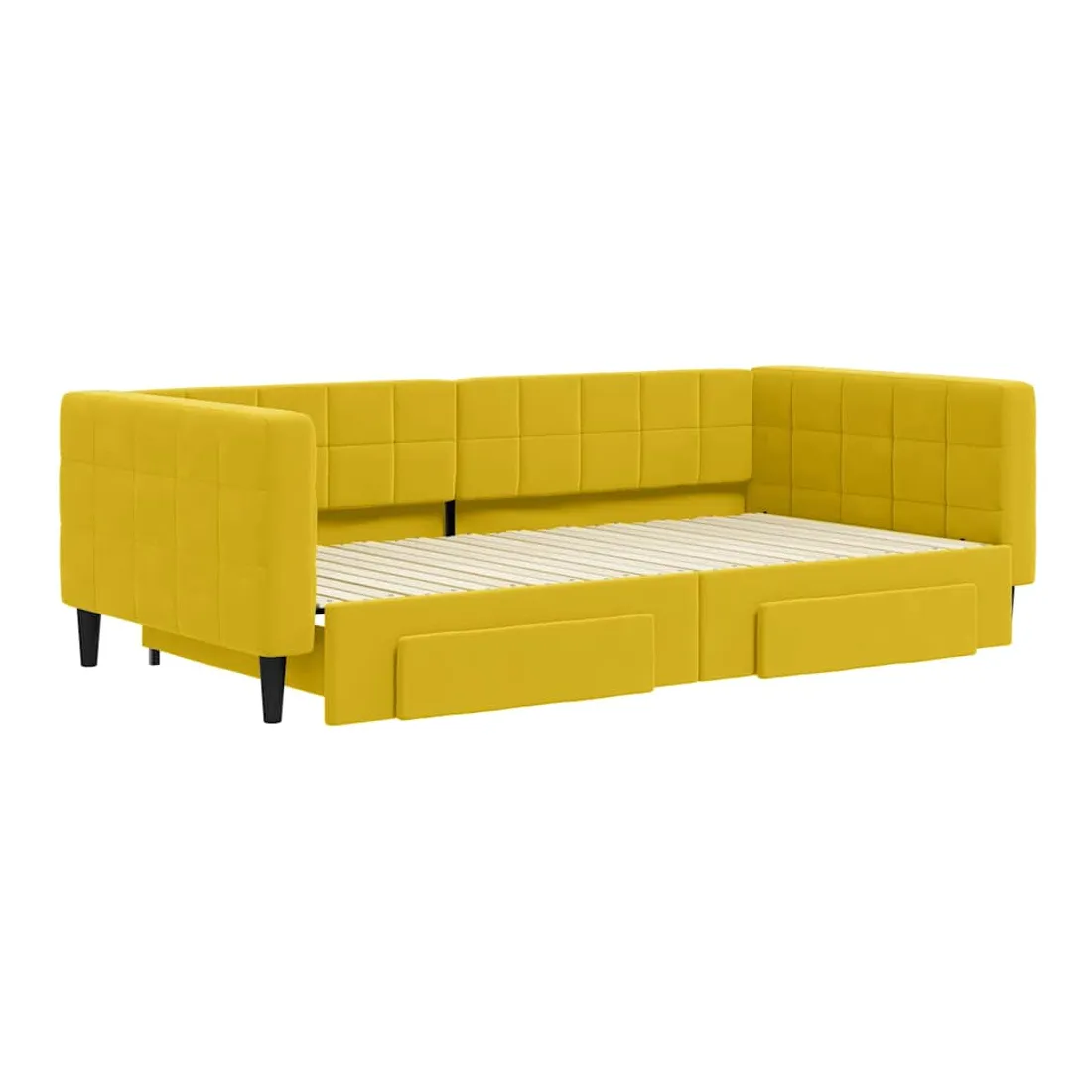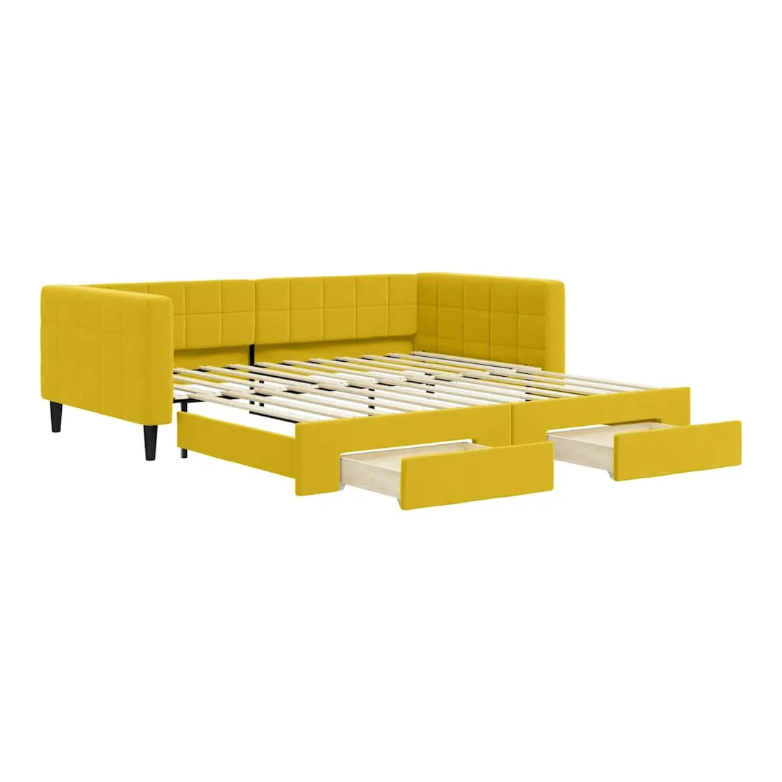 Lit de jour avec gigogne et tiroirs jaune 100x200 cm velours
