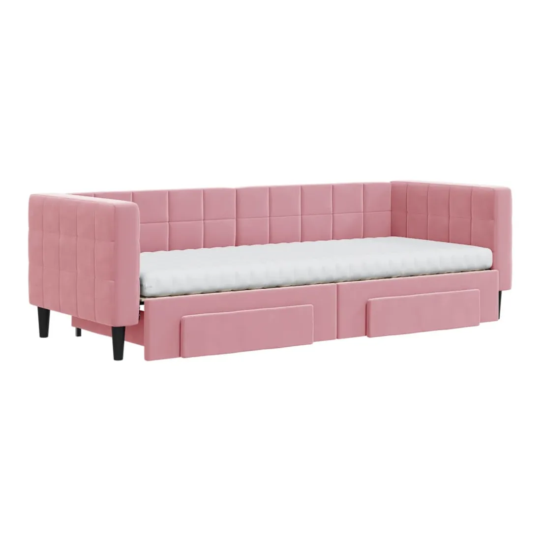 Ce lit de repos 2 en 1 avec lit gigogne, servant à la fois de canapé et de lit, constitue un supplément pratique et accrocheur à votre salon ou chambre à coucher. Lit de repos polyvalent : le canapé-lit fonctionne comme un canapé pendant la journée et se transforme facilement en lit double la nuit en retirant le lit gigogne, offrant une solution pratique pour accueillir des invités et maximiser l'espace.Grand espace de rangement : ce lit d'appoint dispose de deux tiroirs à roulettes qui offrent suffisamment d'espace pour ranger vos vêtements, chaussettes, jouets, coussins, etc.Matelas en mousse confortable : ce lit est fourni avec deux matelas en mousse pour un soutien maximal et un confort optimal.Velours doux et construction solide : ce canapé-lit a un cadre robuste en bois et en métal et est recouvert de velours doux et confortable.