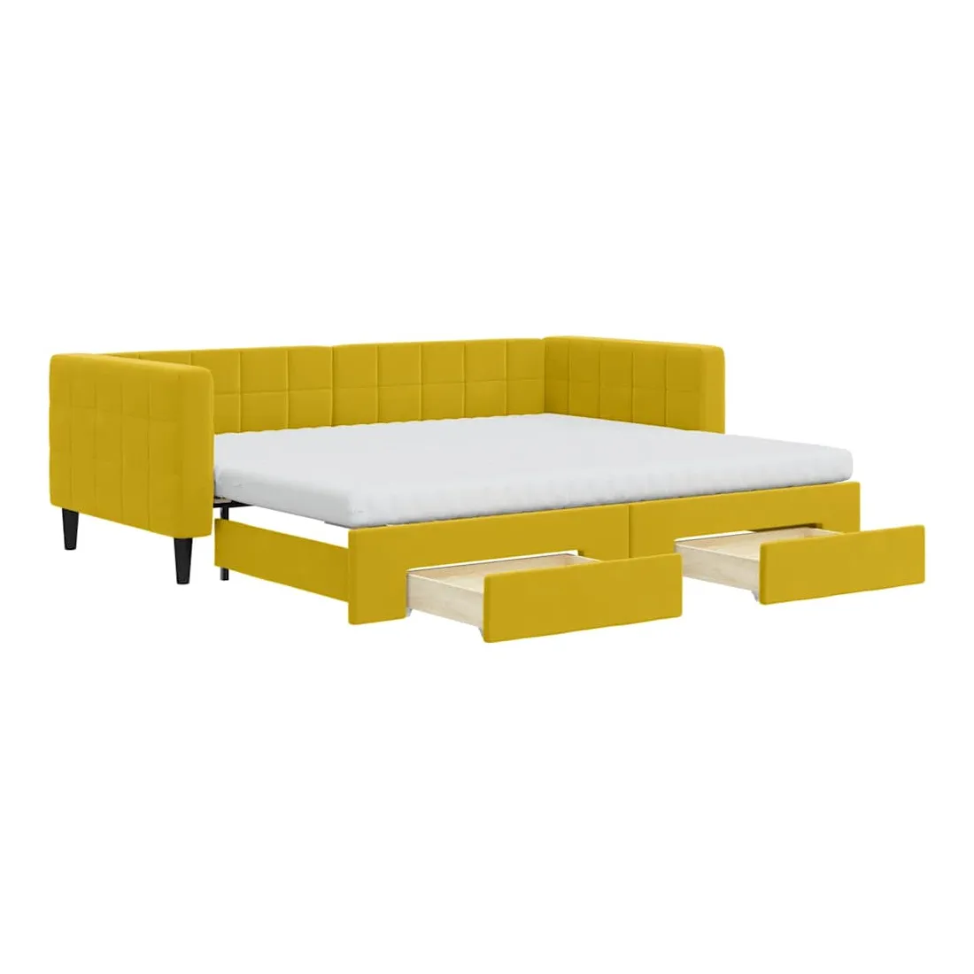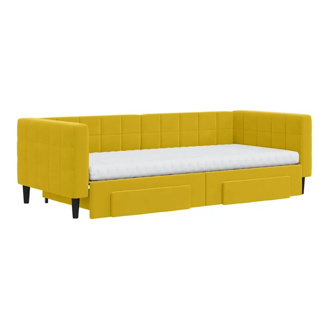 Lit de jour avec gigogne et tiroirs jaune 90x200 cm velours