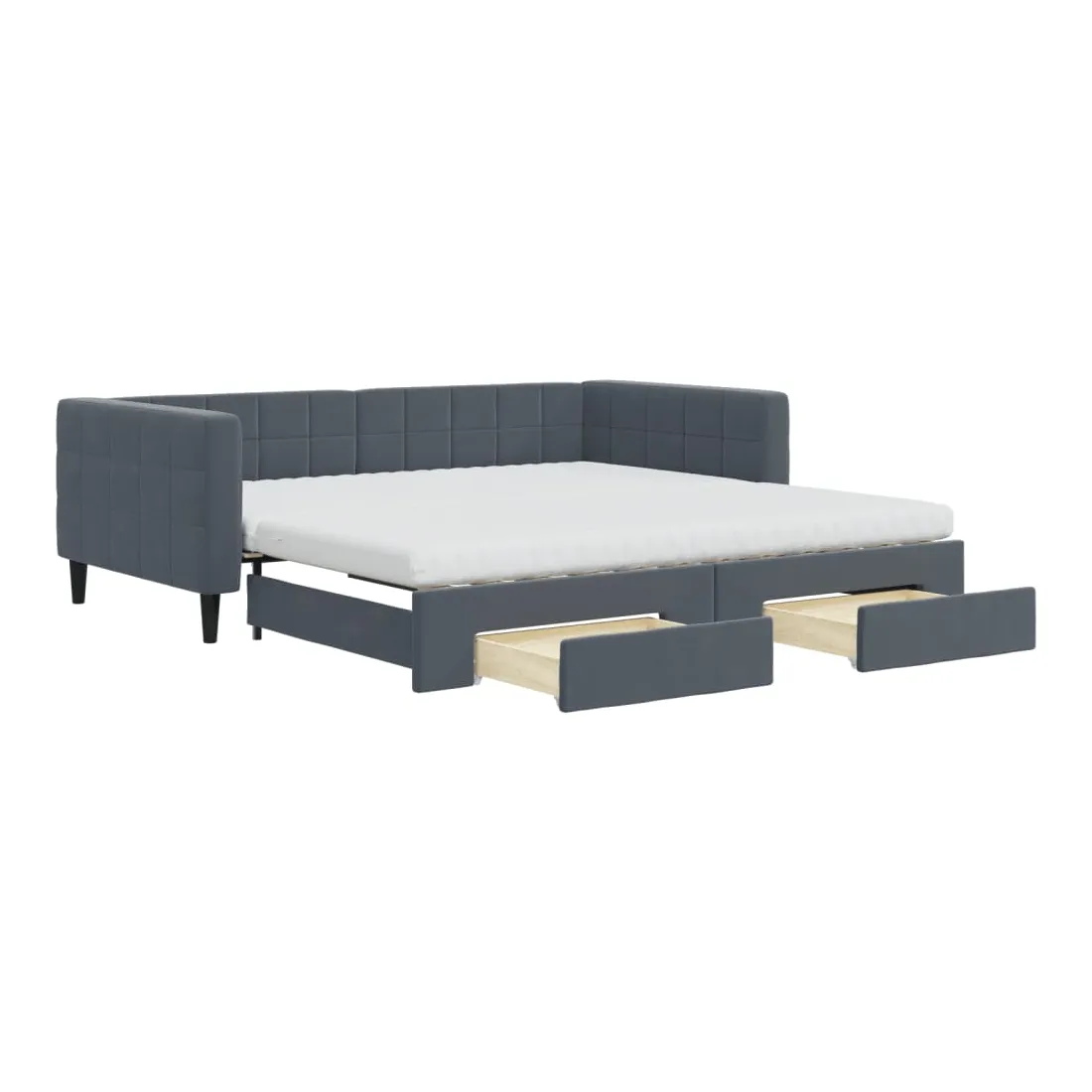 Ce lit de repos 2 en 1 avec lit gigogne, servant à la fois de canapé et de lit, constitue un supplément pratique et accrocheur à votre salon ou chambre à coucher. Lit de repos polyvalent : le canapé-lit fonctionne comme un canapé pendant la journée et se transforme facilement en lit double la nuit en retirant le lit gigogne, offrant une solution pratique pour accueillir des invités et maximiser l'espace.Grand espace de rangement : ce lit d'appoint dispose de deux tiroirs à roulettes qui offrent suffisamment d'espace pour ranger vos vêtements, chaussettes, jouets, coussins, etc.Matelas en mousse confortable : ce lit est fourni avec deux matelas en mousse pour un soutien maximal et un confort optimal.Velours doux et construction solide : ce canapé-lit a un cadre robuste en bois et en métal et est recouvert de velours doux et confortable.