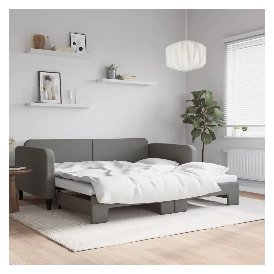 Ce lit de repos 2 en 1 avec lit gigogne, servant à la fois de canapé et de lit, constitue un supplément pratique et accrocheur à votre salon ou chambre à coucher. Lit de repos polyvalent : le canapé-lit fonctionne comme un canapé pendant la journée et se transforme facilement en lit double la nuit en retirant le lit gigogne, offrant une solution pratique pour accueillir des invités et maximiser l'espace.Tissu durable : lit d'appoint est en tissu. Le tissu présente un aspect simple et épuré tout en restant respirant et durable.Construction solide : la structure en bois et en métal du lit assure robustesse et stabilité. Bon à savoir :Les matelas ne sont pas inclus avec ce lit de repos. Nous proposons une sélection variée de matelas. Vous pouvez consulter notre boutique pour les matelas assortis.