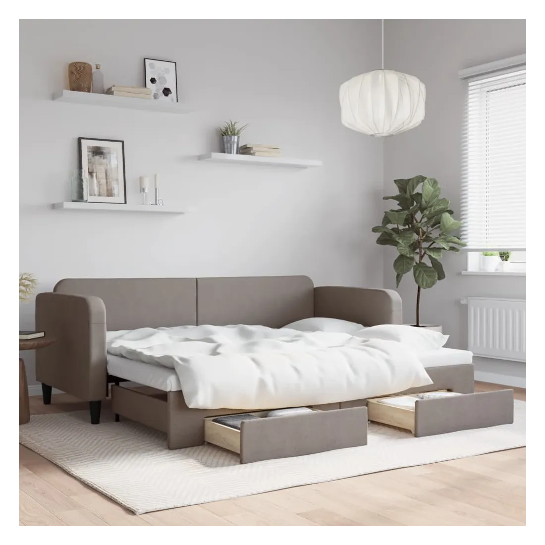 Ce lit de repos 2 en 1 avec lit gigogne, servant à la fois de canapé et de lit, constitue un supplément pratique et accrocheur à votre salon ou chambre à coucher. Lit de repos polyvalent : le canapé-lit fonctionne comme un canapé pendant la journée et se transforme facilement en lit double la nuit en retirant le lit gigogne, offrant une solution pratique pour accueillir des invités et maximiser l'espace.Grand espace de rangement : ce lit d'appoint dispose de deux tiroirs à roulettes qui offrent suffisamment d'espace pour ranger vos vêtements, chaussettes, jouets, coussins, etc.Tissu durable et construction solide : ce canapé-lit a une structure robuste en bois et en métal et est recouvert d'un tissu durable et confortable. Bon à savoir :Les matelas ne sont pas inclus avec ce lit de repos. Nous proposons une sélection variée de matelas. Vous pouvez consulter notre boutique pour les matelas assortis.