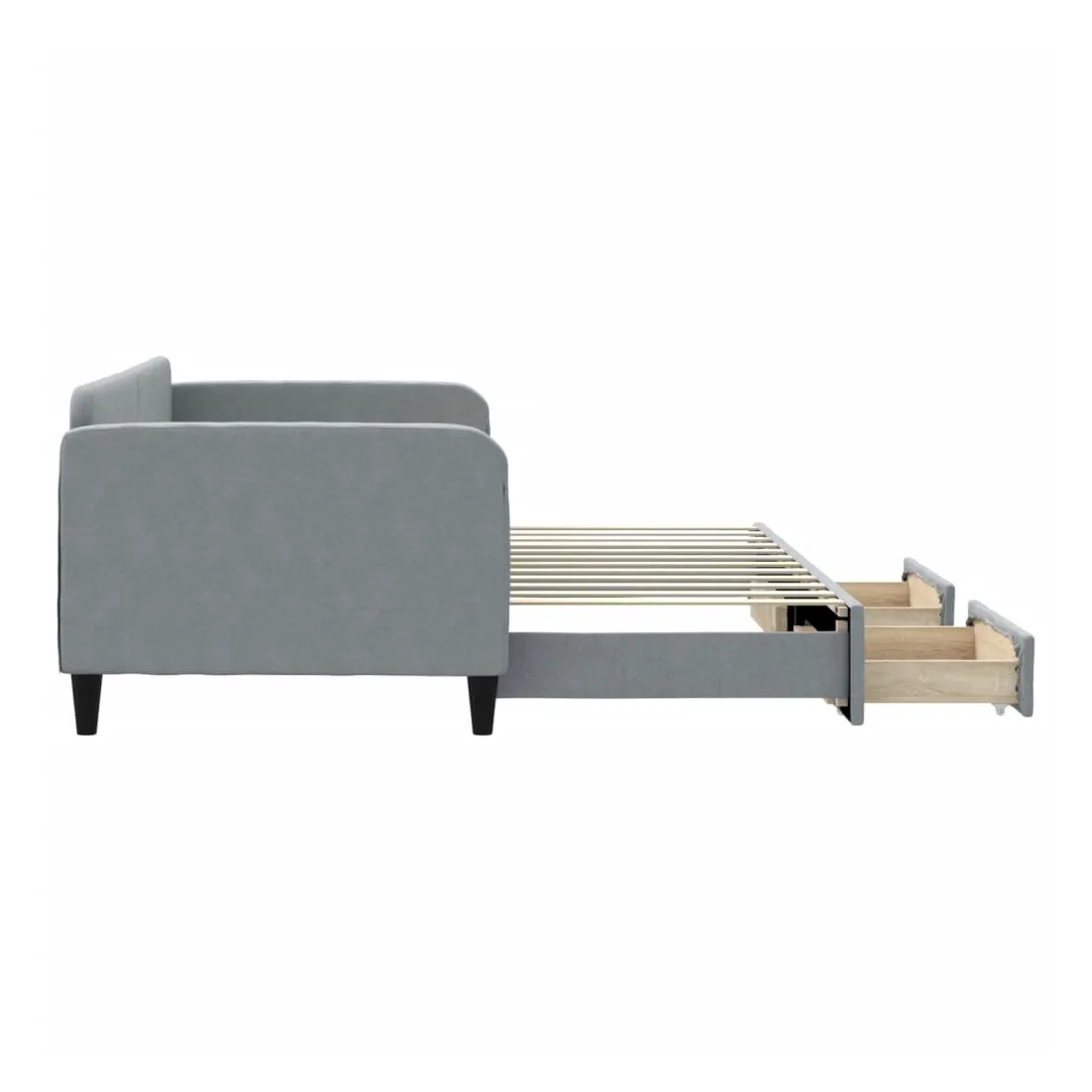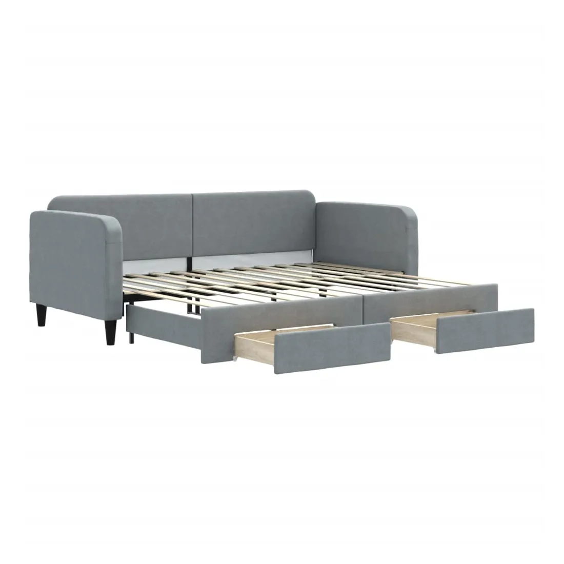 Ce lit de repos 2 en 1 avec lit gigogne, servant à la fois de canapé et de lit, constitue un supplément pratique et accrocheur à votre salon ou chambre à coucher. Lit de repos polyvalent : le canapé-lit fonctionne comme un canapé pendant la journée et se transforme facilement en lit double la nuit en retirant le lit gigogne, offrant une solution pratique pour accueillir des invités et maximiser l'espace.Grand espace de rangement : ce lit d'appoint dispose de deux tiroirs à roulettes qui offrent suffisamment d'espace pour ranger vos vêtements, chaussettes, jouets, coussins, etc.Tissu durable et construction solide : ce canapé-lit a une structure robuste en bois et en métal et est recouvert d'un tissu durable et confortable. Bon à savoir :Les matelas ne sont pas inclus avec ce lit de repos. Nous proposons une sélection variée de matelas. Vous pouvez consulter notre boutique pour les matelas assortis.