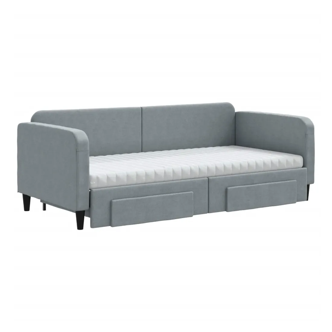 Ce lit de repos 2 en 1 avec lit gigogne, servant à la fois de canapé et de lit, constitue un supplément pratique et accrocheur à votre salon ou chambre à coucher. Lit de repos polyvalent : le canapé-lit fonctionne comme un canapé pendant la journée et se transforme facilement en lit double la nuit en retirant le lit gigogne, offrant une solution pratique pour accueillir des invités et maximiser l'espace.Grand espace de rangement : ce lit d'appoint dispose de deux tiroirs à roulettes qui offrent suffisamment d'espace pour ranger vos vêtements, chaussettes, jouets, coussins, etc.Matelas en mousse confortable : ce lit est fourni avec deux matelas en mousse pour un soutien maximal et un confort optimal.Tissu durable et construction solide : ce canapé-lit a une structure robuste en bois et en métal et est recouvert d'un tissu durable et confortable.