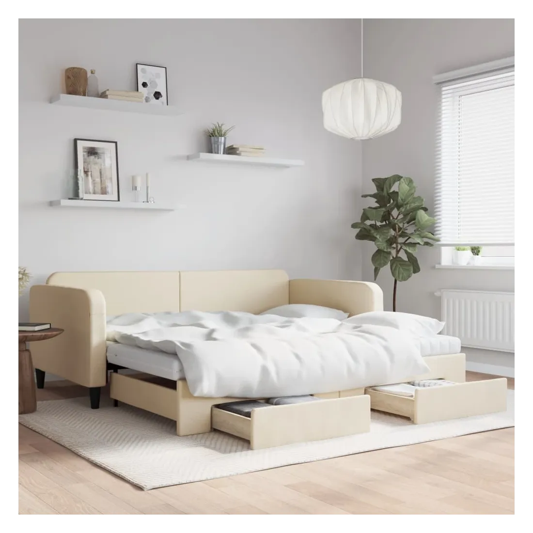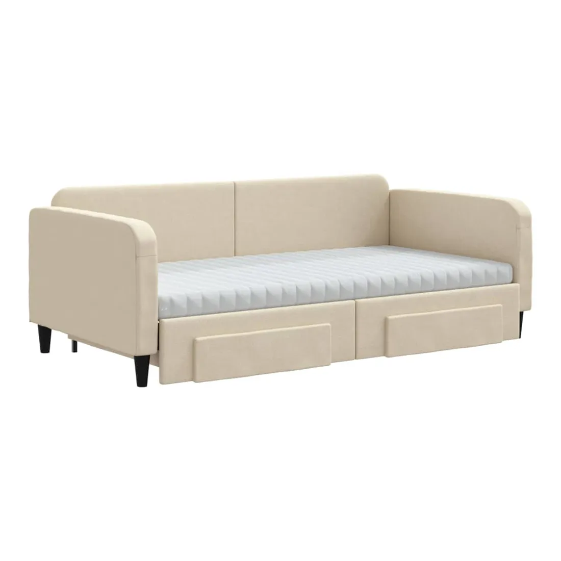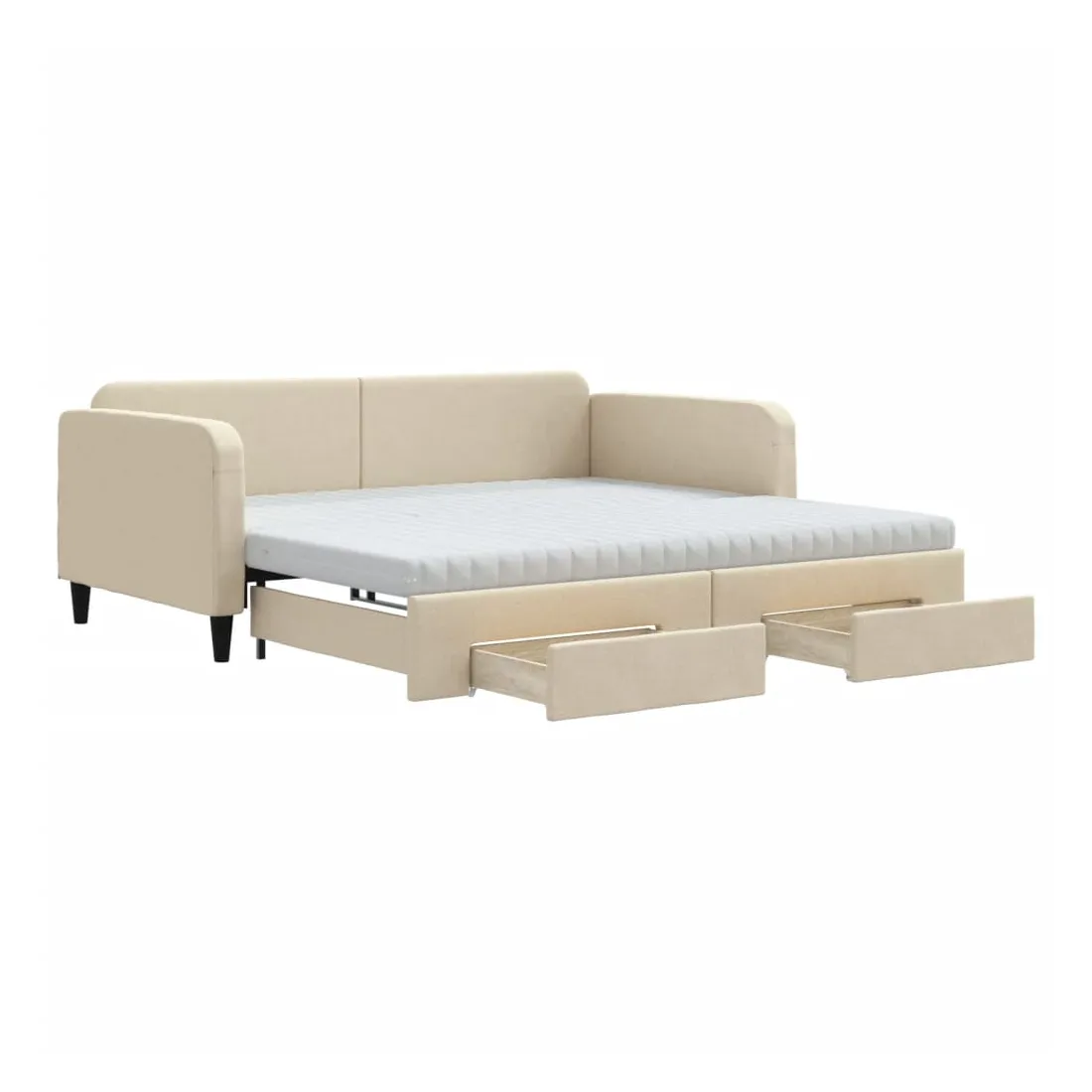 Ce lit de repos 2 en 1 avec lit gigogne, servant à la fois de canapé et de lit, constitue un supplément pratique et accrocheur à votre salon ou chambre à coucher. Lit de repos polyvalent : le canapé-lit fonctionne comme un canapé pendant la journée et se transforme facilement en lit double la nuit en retirant le lit gigogne, offrant une solution pratique pour accueillir des invités et maximiser l'espace.Grand espace de rangement : ce lit d'appoint dispose de deux tiroirs à roulettes qui offrent suffisamment d'espace pour ranger vos vêtements, chaussettes, jouets, coussins, etc.Matelas en mousse confortable : ce lit est fourni avec deux matelas en mousse pour un soutien maximal et un confort optimal.Tissu durable et construction solide : ce canapé-lit a une structure robuste en bois et en métal et est recouvert d'un tissu durable et confortable.