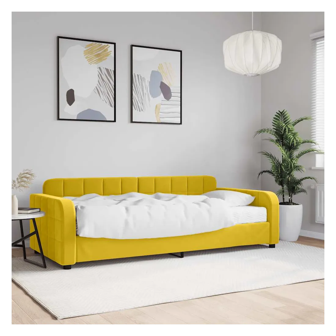 Ce lit de repos 2 en 1 avec matelas, servant à la fois de canapé et de lit, constitue un supplément pratique et accrocheur à votre salon ou votre chambre à coucher. Lit de jour polyvalent : le canapé-lit peut être utilisé comme canapé pendant la journée, ou comme lit pendant la nuit pour offrir une solution rapide pour accueillir des invités pour la nuit.Matelas en mousse confortable : ce lit est fourni avec un matelas en mousse pour un soutien maximal et un confort optimal.Velours doux et construction solide : ce canapé-lit a un cadre robuste en bois et en métal et est recouvert de velours doux et confortable.