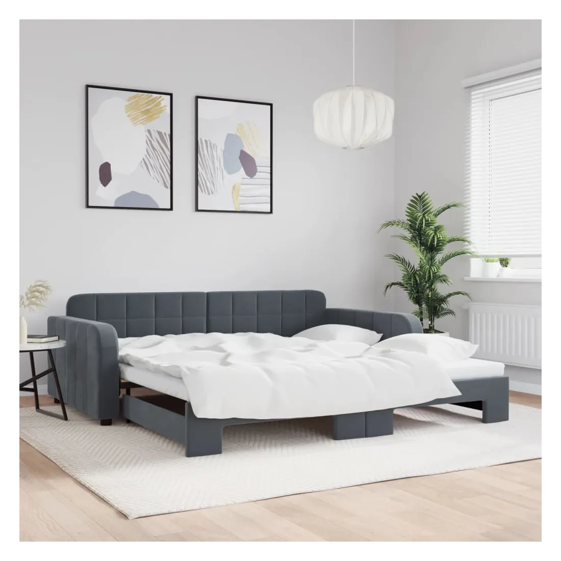Ce lit de repos 2 en 1 avec lit gigogne, servant à la fois de canapé et de lit, constitue un supplément pratique et accrocheur à votre salon ou chambre à coucher. Lit de repos polyvalent : le canapé-lit fonctionne comme un canapé pendant la journée et se transforme facilement en lit double la nuit en retirant le lit gigogne, offrant une solution pratique pour accueillir des invités et maximiser l'espace.Velours doux : le velours est un tissu doux et confortable, agréable au toucher.Construction solide : la structure en bois et en métal du lit assure robustesse et stabilité. Bon à savoir :Les matelas ne sont pas inclus avec ce lit de repos. Nous proposons une sélection variée de matelas. Vous pouvez consulter notre boutique pour les matelas assortis.