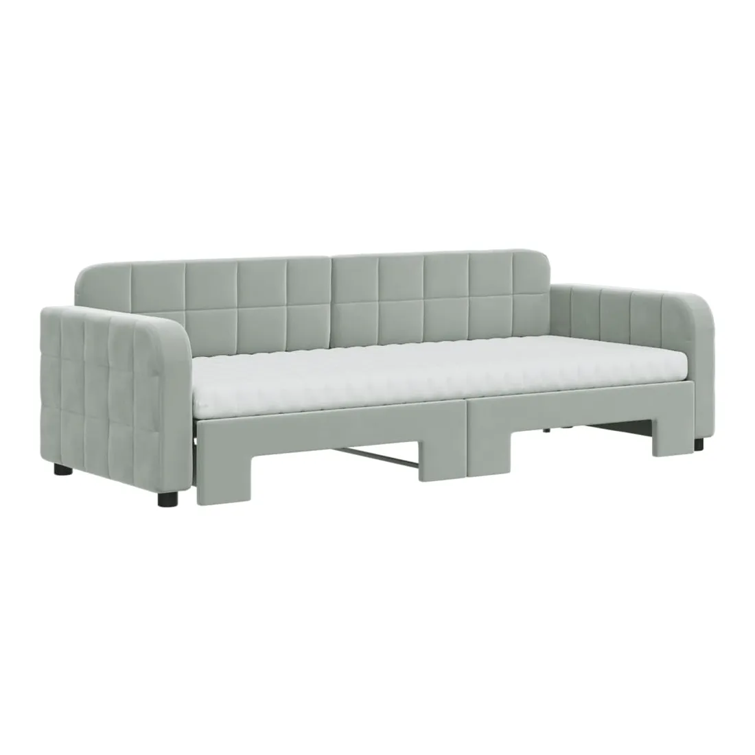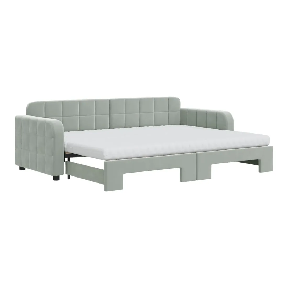 Ce lit de repos 2 en 1 avec lit gigogne, servant à la fois de canapé et de lit, constitue un supplément pratique et accrocheur à votre salon ou chambre à coucher. Lit de repos polyvalent : le canapé-lit fonctionne comme un canapé pendant la journée et se transforme facilement en lit double la nuit en retirant le lit gigogne, offrant une solution pratique pour accueillir des invités et maximiser l'espace.Matelas en mousse confortable : ce lit est fourni avec deux matelas en mousse pour un soutien maximal et un confort optimal.Velours doux et construction solide : ce canapé-lit a un cadre robuste en bois et en métal et est recouvert de velours doux et confortable.