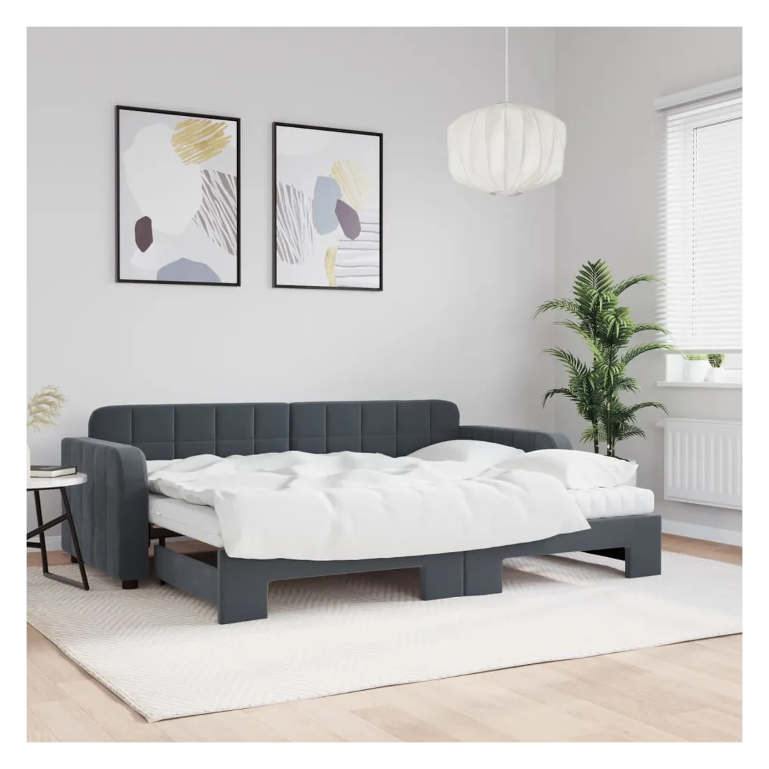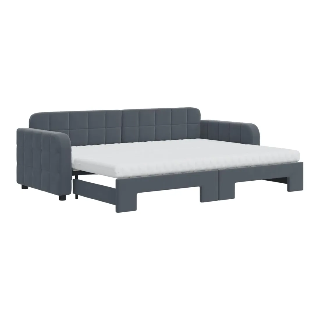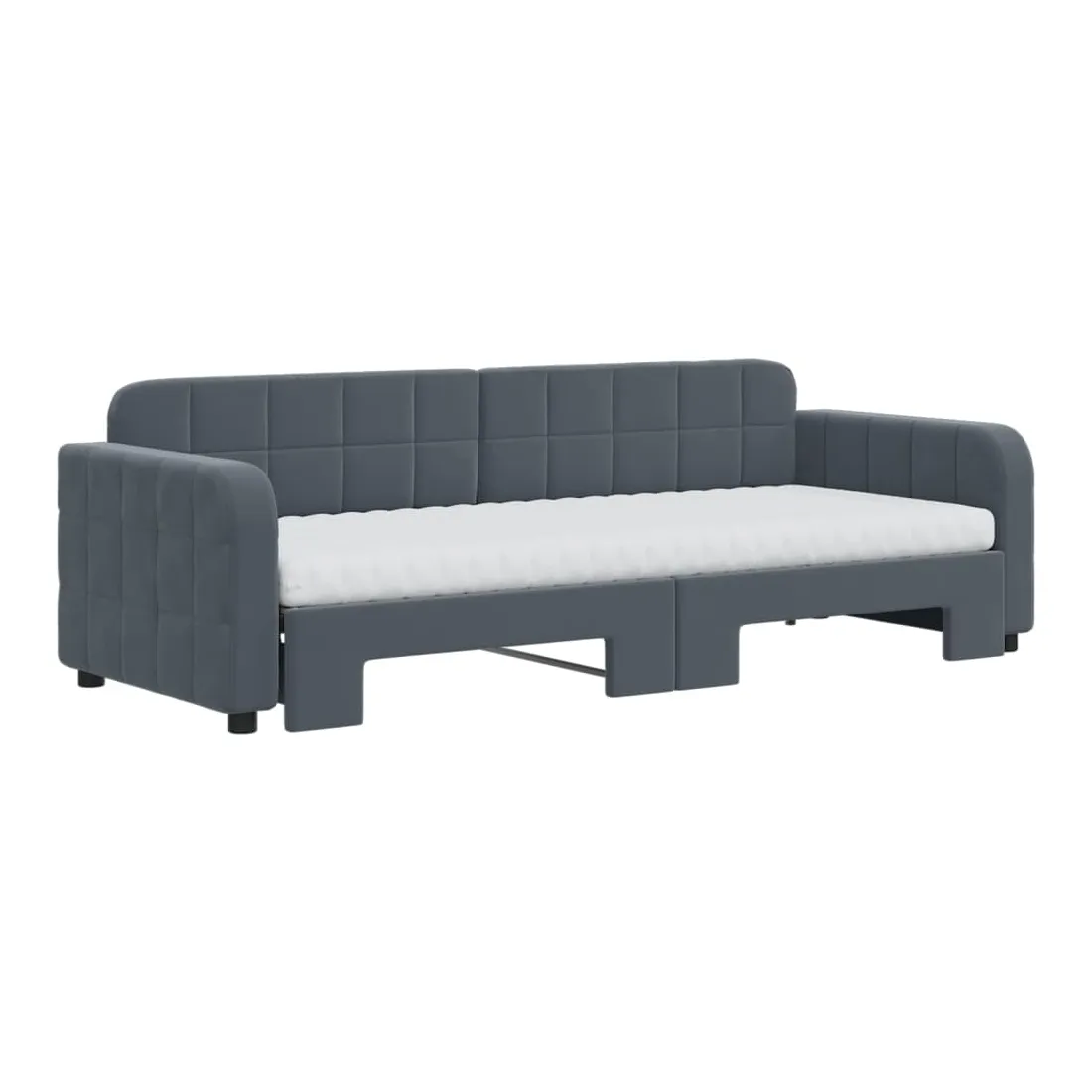 Ce lit de repos 2 en 1 avec lit gigogne, servant à la fois de canapé et de lit, constitue un supplément pratique et accrocheur à votre salon ou chambre à coucher. Lit de repos polyvalent : le canapé-lit fonctionne comme un canapé pendant la journée et se transforme facilement en lit double la nuit en retirant le lit gigogne, offrant une solution pratique pour accueillir des invités et maximiser l'espace.Matelas en mousse confortable : ce lit est fourni avec deux matelas en mousse pour un soutien maximal et un confort optimal.Velours doux et construction solide : ce canapé-lit a un cadre robuste en bois et en métal et est recouvert de velours doux et confortable.