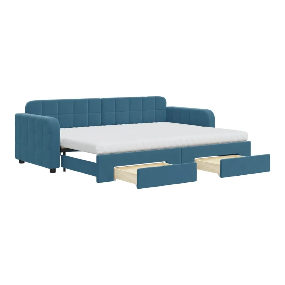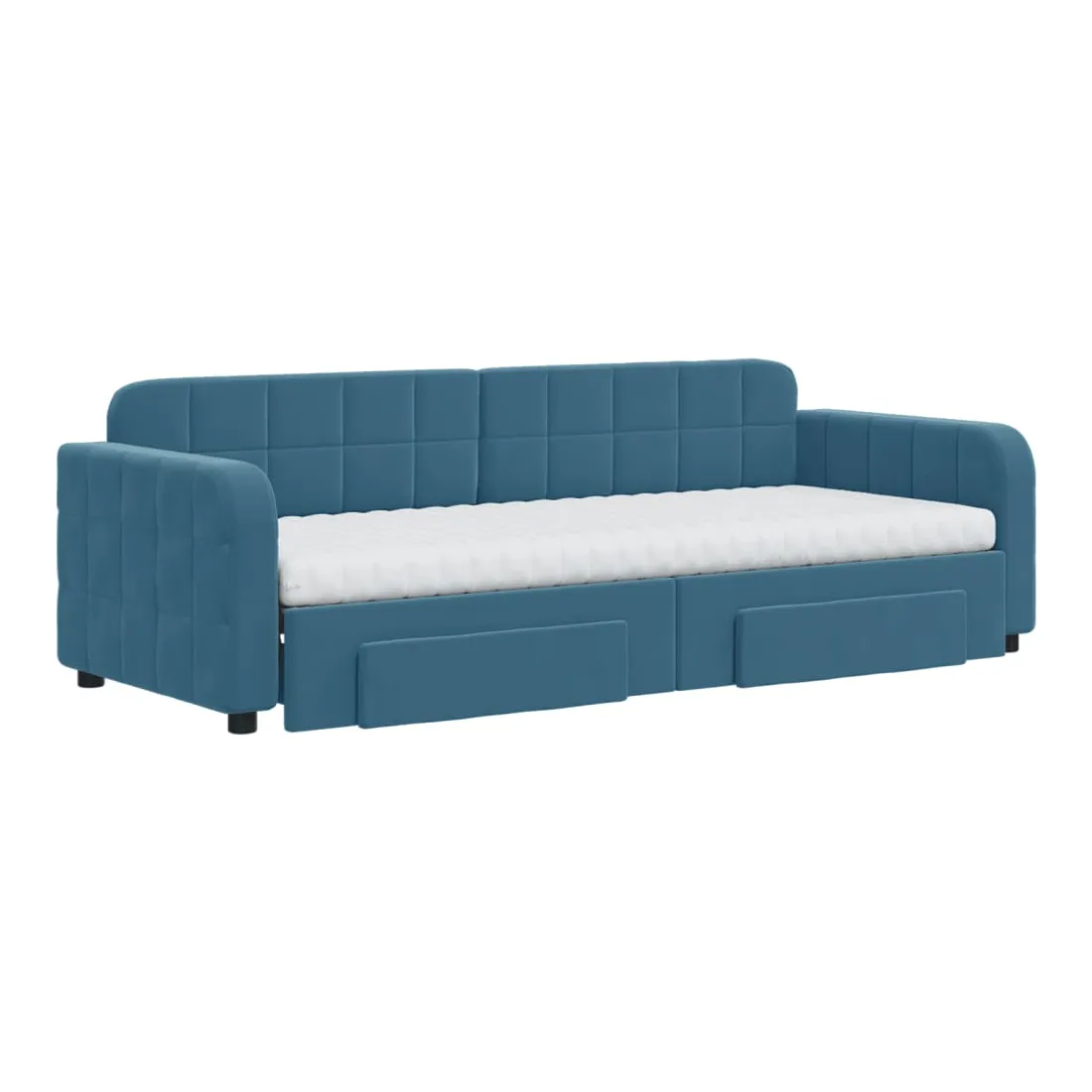 Ce lit de repos 2 en 1 avec lit gigogne, servant à la fois de canapé et de lit, constitue un supplément pratique et accrocheur à votre salon ou chambre à coucher. Lit de repos polyvalent : le canapé-lit fonctionne comme un canapé pendant la journée et se transforme facilement en lit double la nuit en retirant le lit gigogne, offrant une solution pratique pour accueillir des invités et maximiser l'espace.Grand espace de rangement : ce lit d'appoint dispose de deux tiroirs à roulettes qui offrent suffisamment d'espace pour ranger vos vêtements, chaussettes, jouets, coussins, etc.Matelas en mousse confortable : ce lit est fourni avec deux matelas en mousse pour un soutien maximal et un confort optimal.Velours doux et construction solide : ce canapé-lit a un cadre robuste en bois et en métal et est recouvert de velours doux et confortable.