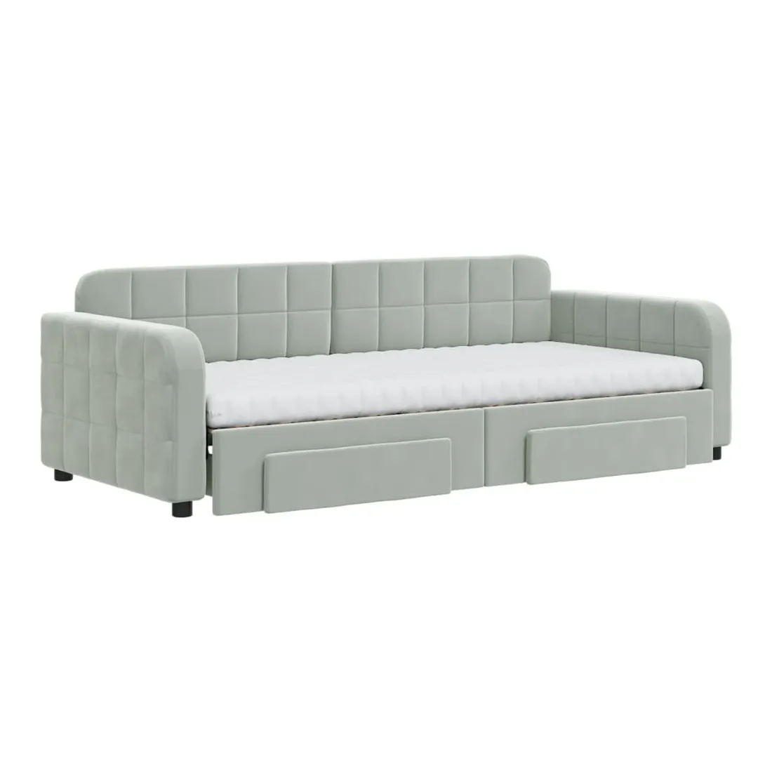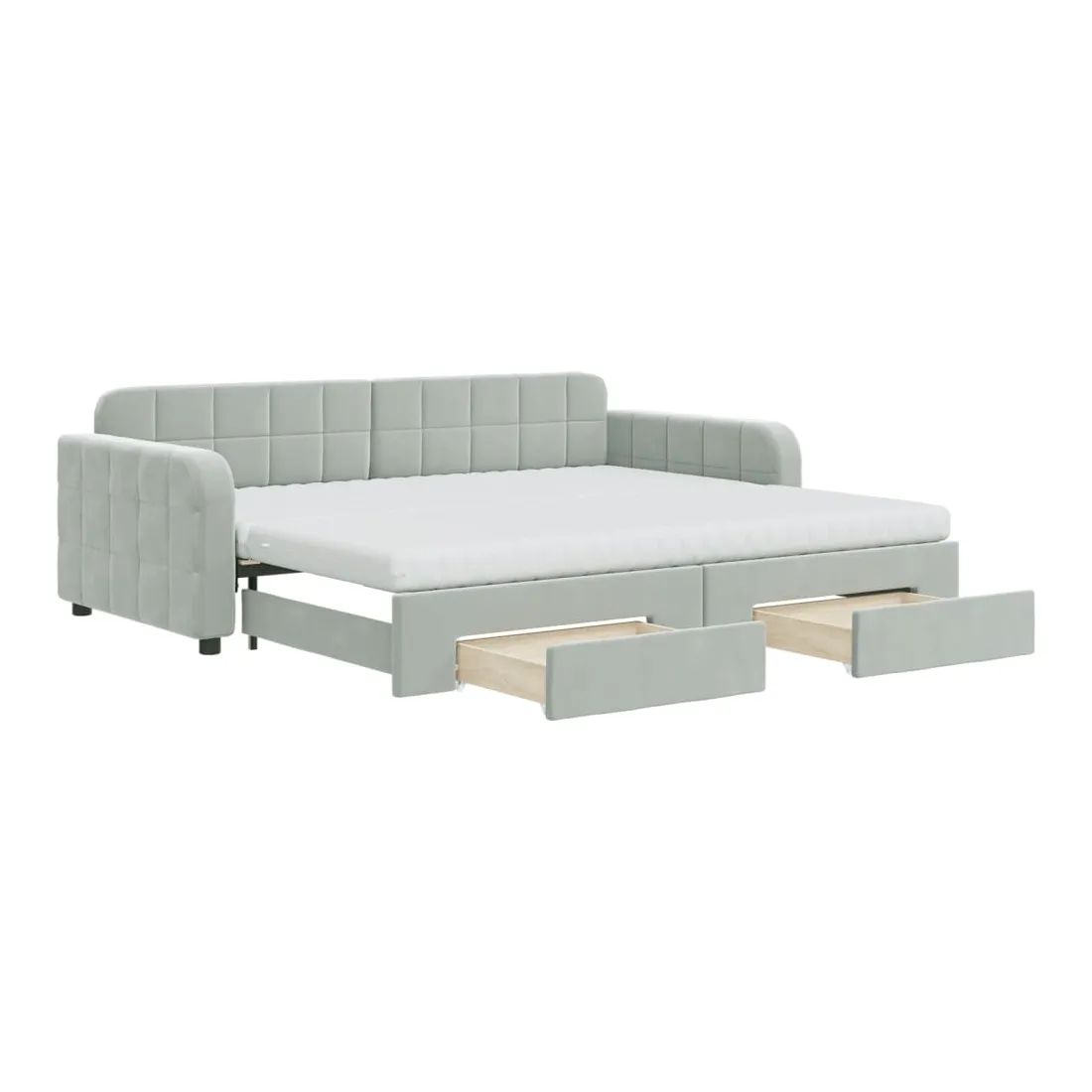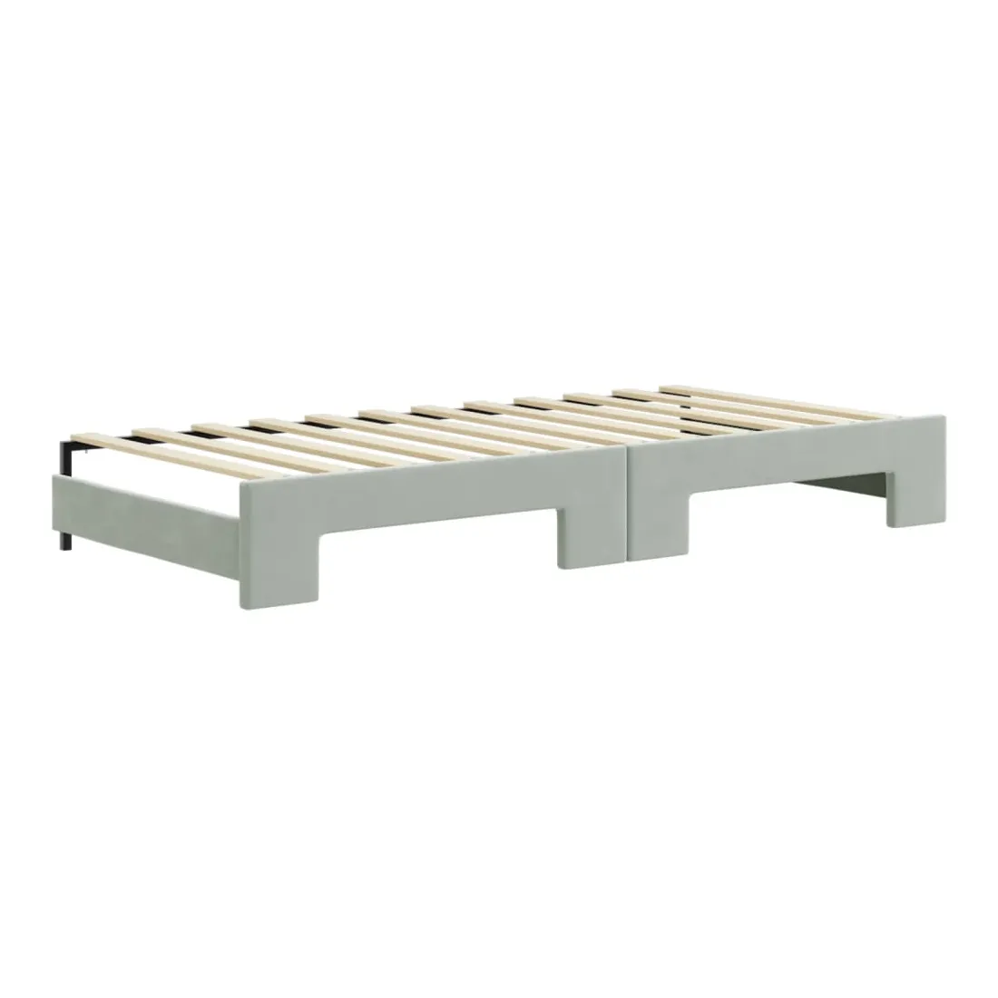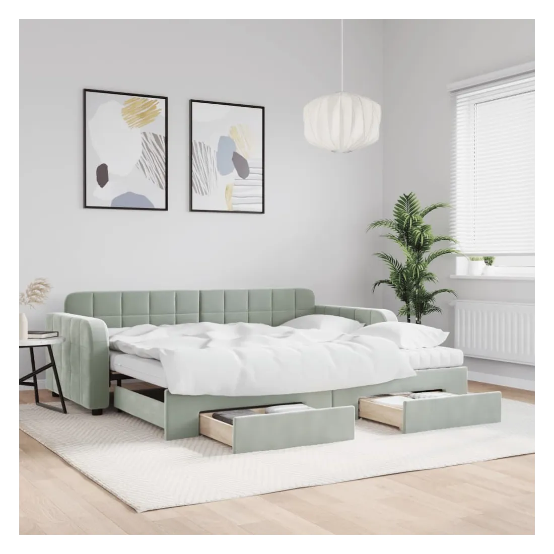 Ce lit de repos 2 en 1 avec lit gigogne, servant à la fois de canapé et de lit, constitue un supplément pratique et accrocheur à votre salon ou chambre à coucher. Lit de repos polyvalent : le canapé-lit fonctionne comme un canapé pendant la journée et se transforme facilement en lit double la nuit en retirant le lit gigogne, offrant une solution pratique pour accueillir des invités et maximiser l'espace.Grand espace de rangement : ce lit d'appoint dispose de deux tiroirs à roulettes qui offrent suffisamment d'espace pour ranger vos vêtements, chaussettes, jouets, coussins, etc.Matelas en mousse confortable : ce lit est fourni avec deux matelas en mousse pour un soutien maximal et un confort optimal.Velours doux et construction solide : ce canapé-lit a un cadre robuste en bois et en métal et est recouvert de velours doux et confortable.