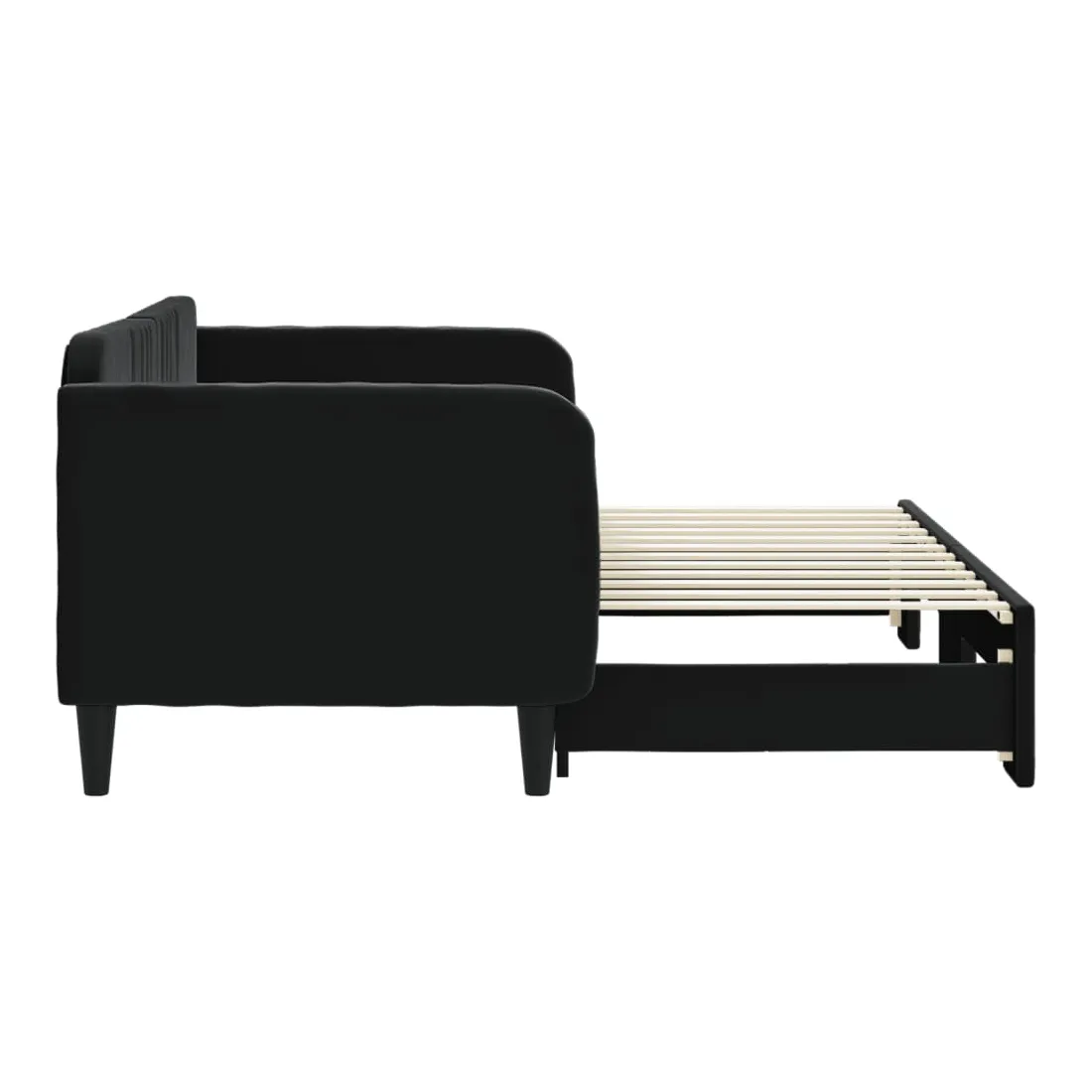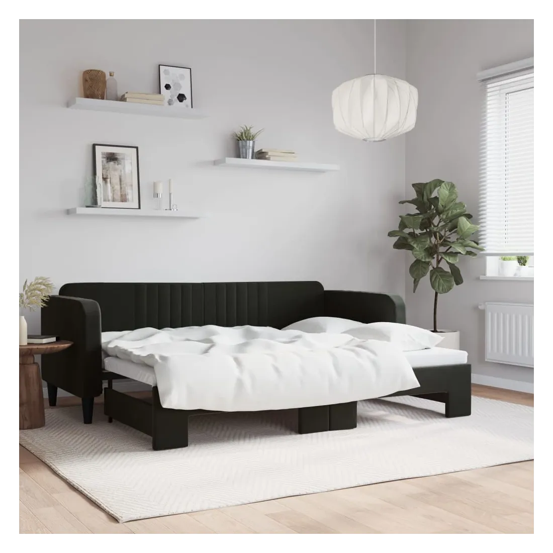 Ce lit de repos 2 en 1 avec lit gigogne, servant à la fois de canapé et de lit, constitue un supplément pratique et accrocheur à votre salon ou chambre à coucher. Lit de repos polyvalent : le canapé-lit fonctionne comme un canapé pendant la journée et se transforme facilement en lit double la nuit en retirant le lit gigogne, offrant une solution pratique pour accueillir des invités et maximiser l'espace.Velours doux et construction solide : ce canapé-lit a un cadre robuste en bois et en métal et est recouvert de velours doux et confortable.Design moderne : le canapé-lit a un design moderne qui présente des lignes épurées, un aspect minimaliste, ainsi que de la lumière naturelle, et ajoutera un style moderne à votre intérieur ! Bon à savoir :Les matelas ne sont pas inclus avec ce lit. Nous proposons une sélection variée de matelas. Vous pouvez consulter notre boutique pour trouver les matelas assortis.