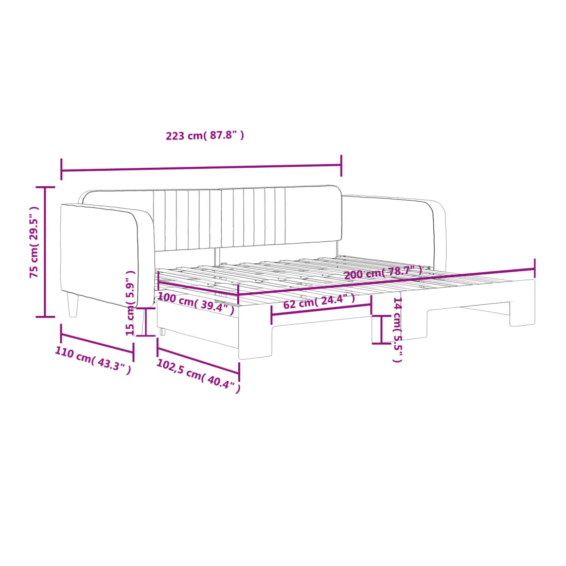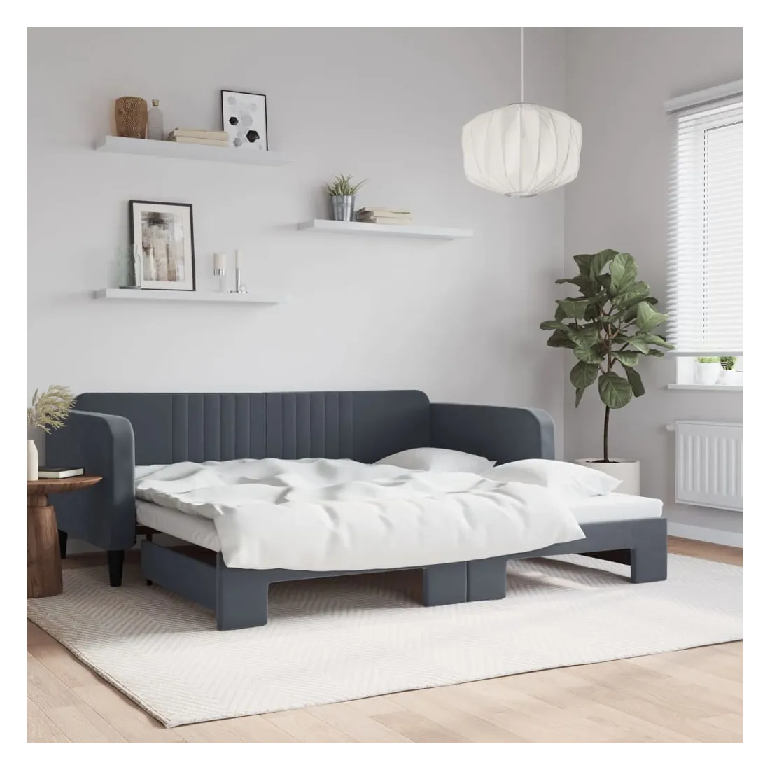 Ce lit de repos 2 en 1 avec lit gigogne, servant à la fois de canapé et de lit, constitue un supplément pratique et accrocheur à votre salon ou chambre à coucher. Lit de repos polyvalent : le canapé-lit fonctionne comme un canapé pendant la journée et se transforme facilement en lit double la nuit en retirant le lit gigogne, offrant une solution pratique pour accueillir des invités et maximiser l'espace.Velours doux et construction solide : ce canapé-lit a un cadre robuste en bois et en métal et est recouvert de velours doux et confortable.Design moderne : le canapé-lit a un design moderne qui présente des lignes épurées, un aspect minimaliste, ainsi que de la lumière naturelle, et ajoutera un style moderne à votre intérieur ! Bon à savoir :Les matelas ne sont pas inclus avec ce lit. Nous proposons une sélection variée de matelas. Vous pouvez consulter notre boutique pour trouver les matelas assortis.