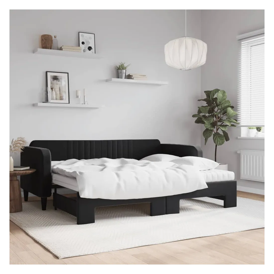 Ce lit de repos 2 en 1 avec lit gigogne, servant à la fois de canapé et de lit, constitue un supplément pratique et accrocheur à votre salon ou chambre à coucher. Lit de repos polyvalent : le canapé-lit fonctionne comme un canapé pendant la journée et se transforme facilement en lit double la nuit en retirant le lit gigogne, offrant une solution pratique pour accueillir des invités et maximiser l'espace.Matelas en mousse confortable : ce lit est fourni avec deux matelas en mousse pour un soutien maximal et un confort optimal.Velours doux et construction solide : ce canapé-lit a un cadre robuste en bois et en métal et est recouvert de velours doux et confortable.Design moderne : le canapé-lit a un design moderne qui présente des lignes épurées, un aspect minimaliste, ainsi que de la lumière naturelle, et ajoutera un style moderne à votre intérieur !