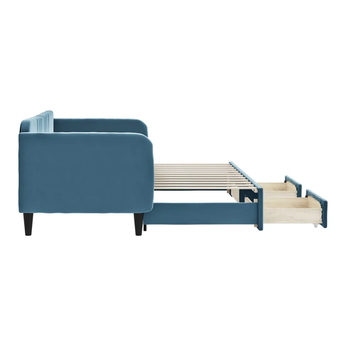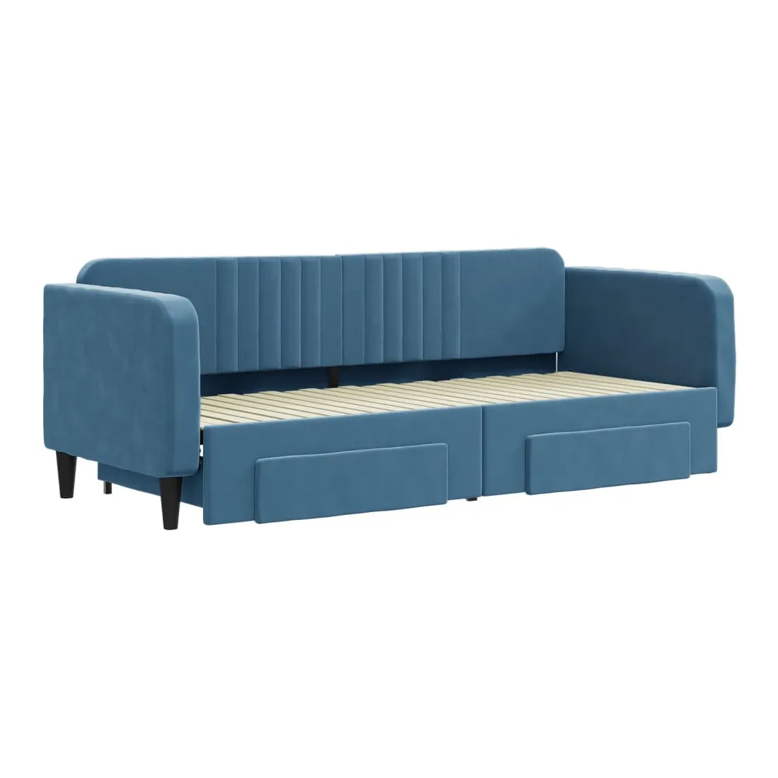Ce lit de repos 2 en 1 avec lit gigogne, servant à la fois de canapé et de lit, constitue un supplément pratique et accrocheur à votre salon ou chambre à coucher. Lit de repos polyvalent : le canapé-lit fonctionne comme un canapé pendant la journée et se transforme facilement en lit double la nuit en retirant le lit gigogne, offrant une solution pratique pour accueillir des invités et maximiser l'espace.Grand espace de rangement : ce lit d'appoint dispose de deux tiroirs à roulettes qui offrent suffisamment d'espace pour ranger vos vêtements, chaussettes, jouets, coussins, etc.Velours doux et construction solide : ce canapé-lit a un cadre robuste en bois et en métal et est recouvert de velours doux et confortable.Design moderne : le canapé-lit a un design moderne qui présente des lignes épurées, un aspect minimaliste, ainsi que de la lumière naturelle, et ajoutera un style moderne à votre intérieur ! Bon à savoir :Les matelas ne sont pas inclus avec ce lit. Nous proposons une sélection variée de matelas. Vous pouvez consulter notre boutique pour trouver les matelas assortis.
