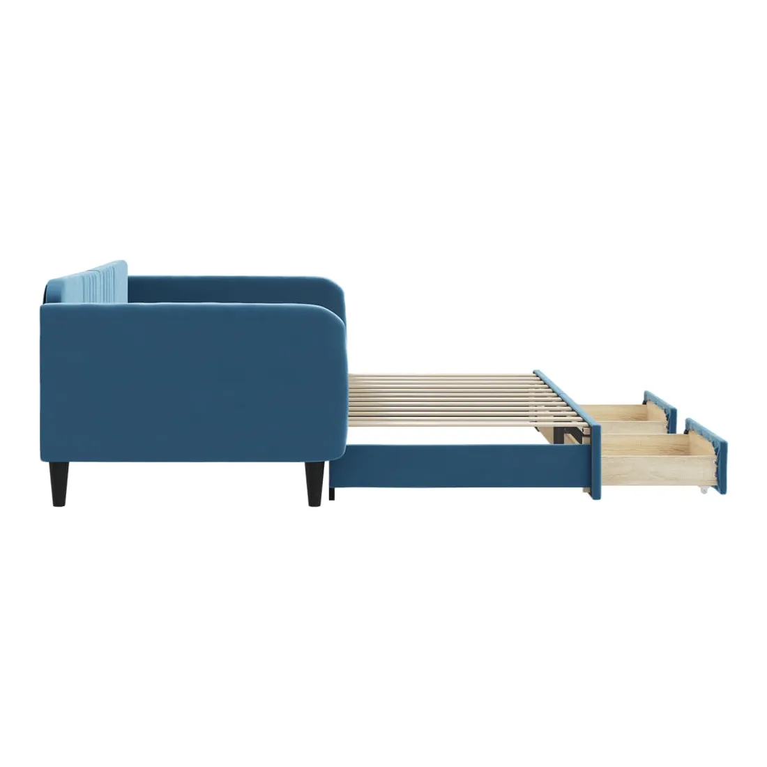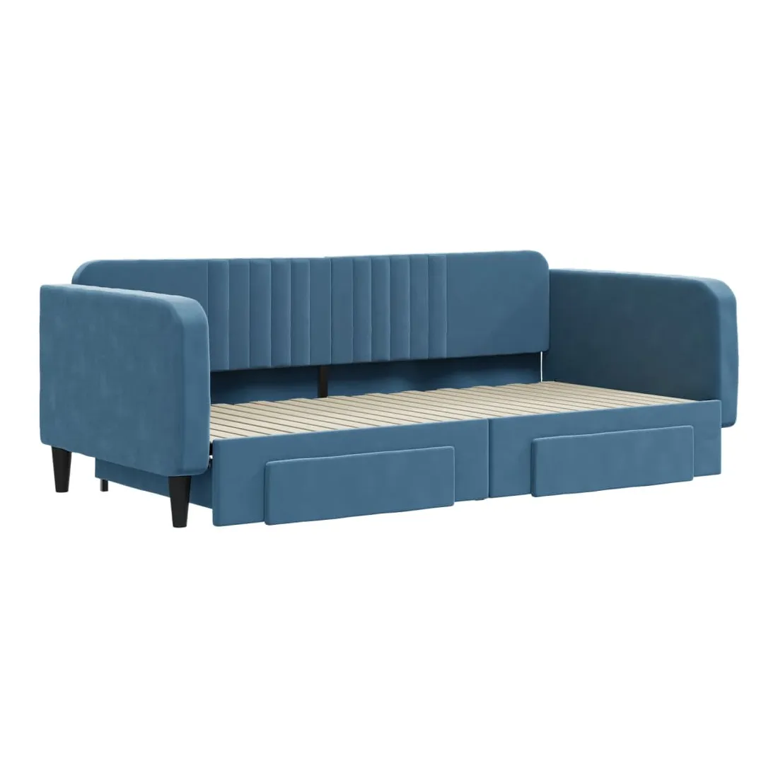 Ce lit de repos 2 en 1 avec lit gigogne, servant à la fois de canapé et de lit, constitue un supplément pratique et accrocheur à votre salon ou chambre à coucher. Lit de repos polyvalent : le canapé-lit fonctionne comme un canapé pendant la journée et se transforme facilement en lit double la nuit en retirant le lit gigogne, offrant une solution pratique pour accueillir des invités et maximiser l'espace.Grand espace de rangement : ce lit d'appoint dispose de deux tiroirs à roulettes qui offrent suffisamment d'espace pour ranger vos vêtements, chaussettes, jouets, coussins, etc.Velours doux et construction solide : ce canapé-lit a un cadre robuste en bois et en métal et est recouvert de velours doux et confortable.Design moderne : le canapé-lit a un design moderne qui présente des lignes épurées, un aspect minimaliste, ainsi que de la lumière naturelle, et ajoutera un style moderne à votre intérieur ! Bon à savoir :Les matelas ne sont pas inclus avec ce lit. Nous proposons une sélection variée de matelas. Vous pouvez consulter notre boutique pour trouver les matelas assortis.