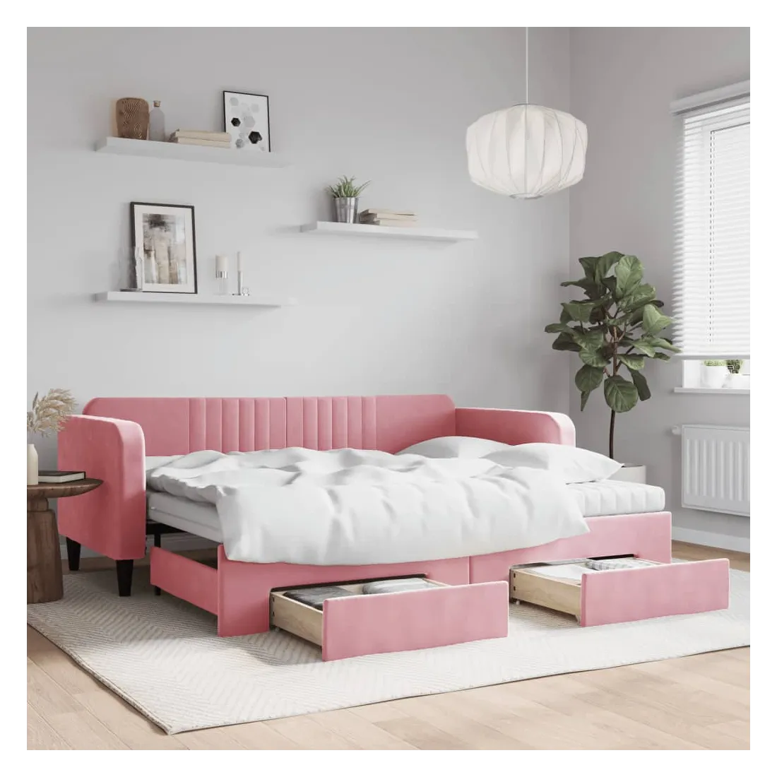 Ce lit de repos 2 en 1 avec lit gigogne, servant à la fois de canapé et de lit, constitue un supplément pratique et accrocheur à votre salon ou chambre à coucher. Lit de repos polyvalent : le canapé-lit fonctionne comme un canapé pendant la journée et se transforme facilement en lit double la nuit en retirant le lit gigogne, offrant une solution pratique pour accueillir des invités et maximiser l'espace.Grand espace de rangement : ce lit d'appoint dispose de deux tiroirs à roulettes qui offrent suffisamment d'espace pour ranger vos vêtements, chaussettes, jouets, coussins, etc.Matelas en mousse confortable : ce lit est fourni avec deux matelas en mousse pour un soutien maximal et un confort optimal.Velours doux et construction solide : ce canapé-lit a un cadre robuste en bois et en métal et est recouvert de velours doux et confortable.