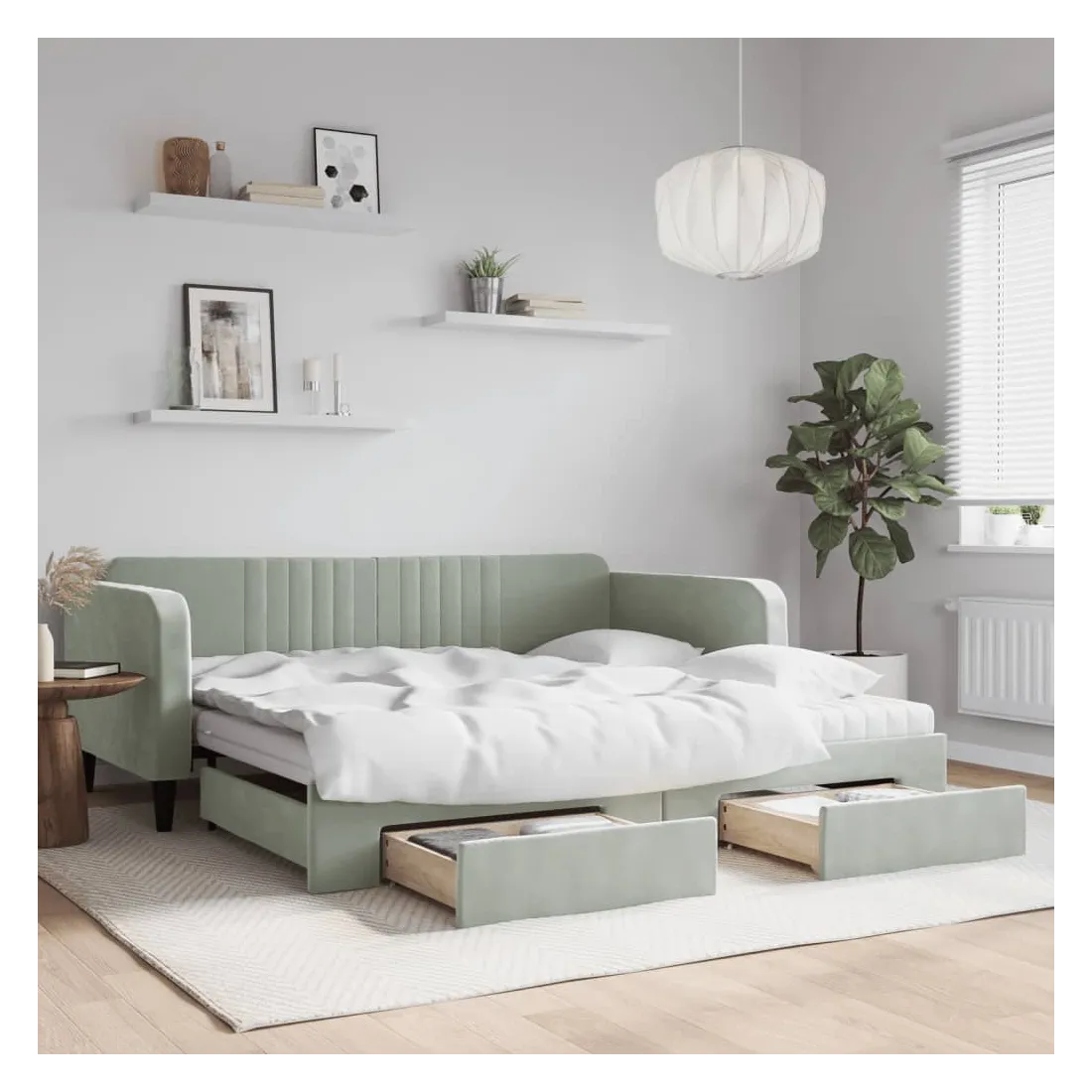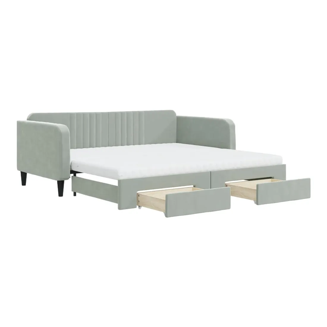 Ce lit de repos 2 en 1 avec lit gigogne, servant à la fois de canapé et de lit, constitue un supplément pratique et accrocheur à votre salon ou chambre à coucher. Lit de repos polyvalent : le canapé-lit fonctionne comme un canapé pendant la journée et se transforme facilement en lit double la nuit en retirant le lit gigogne, offrant une solution pratique pour accueillir des invités et maximiser l'espace.Grand espace de rangement : ce lit d'appoint dispose de deux tiroirs à roulettes qui offrent suffisamment d'espace pour ranger vos vêtements, chaussettes, jouets, coussins, etc.Matelas en mousse confortable : ce lit est fourni avec deux matelas en mousse pour un soutien maximal et un confort optimal.Velours doux et construction solide : ce canapé-lit a un cadre robuste en bois et en métal et est recouvert de velours doux et confortable.