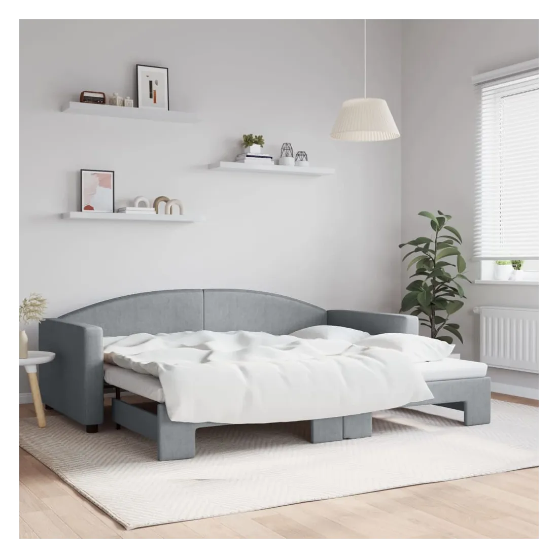 Ce lit de repos 2 en 1 avec lit gigogne, servant à la fois de canapé et de lit, constitue un supplément pratique et accrocheur à votre salon ou chambre à coucher. Lit de repos polyvalent : le canapé-lit fonctionne comme un canapé pendant la journée et se transforme facilement en lit double la nuit en retirant le lit gigogne, offrant une solution pratique pour accueillir des invités et maximiser l'espace.Tissu durable et construction solide : ce canapé-lit a une structure robuste en bois et en métal et est recouvert d'un tissu durable et confortable.Design moderne : le canapé-lit a un design moderne qui présente des lignes épurées, un aspect minimaliste, ainsi que de la lumière naturelle, et ajoutera un style moderne à votre intérieur ! Bon à savoir :Les matelas ne sont pas inclus avec ce lit. Nous proposons une sélection variée de matelas. Vous pouvez consulter notre boutique pour trouver les matelas assortis.