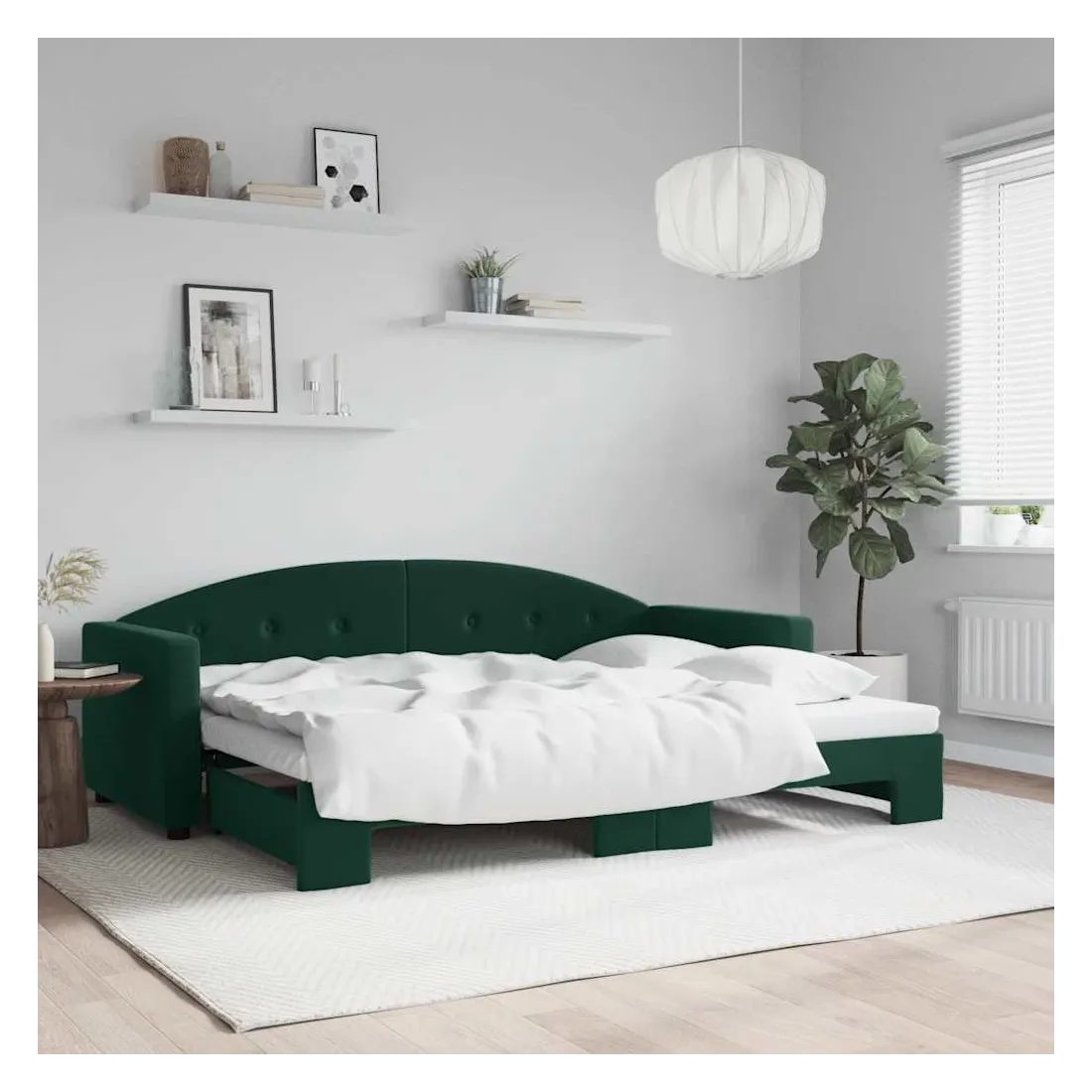 Ce lit de repos 2 en 1 avec lit gigogne, servant à la fois de canapé et de lit, constitue un supplément pratique et accrocheur à votre salon ou chambre à coucher. Lit de repos polyvalent : le canapé-lit fonctionne comme un canapé pendant la journée et se transforme facilement en lit double la nuit en retirant le lit gigogne, offrant une solution pratique pour accueillir des invités et maximiser l'espace.Velours doux et construction solide : ce canapé-lit a un cadre robuste en bois et en métal et est recouvert de velours doux et confortable.Design moderne : le canapé-lit a un design moderne qui présente des lignes épurées, un aspect minimaliste, ainsi que de la lumière naturelle, et ajoutera un style moderne à votre intérieur ! Bon à savoir :Les matelas ne sont pas inclus avec ce lit. Nous proposons une sélection variée de matelas. Vous pouvez consulter notre boutique pour trouver les matelas assortis.