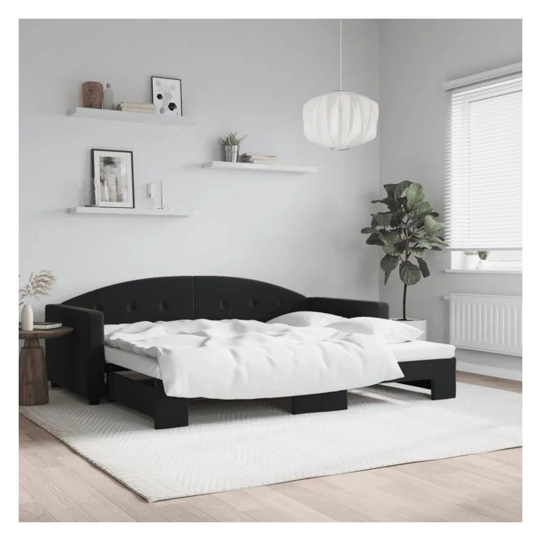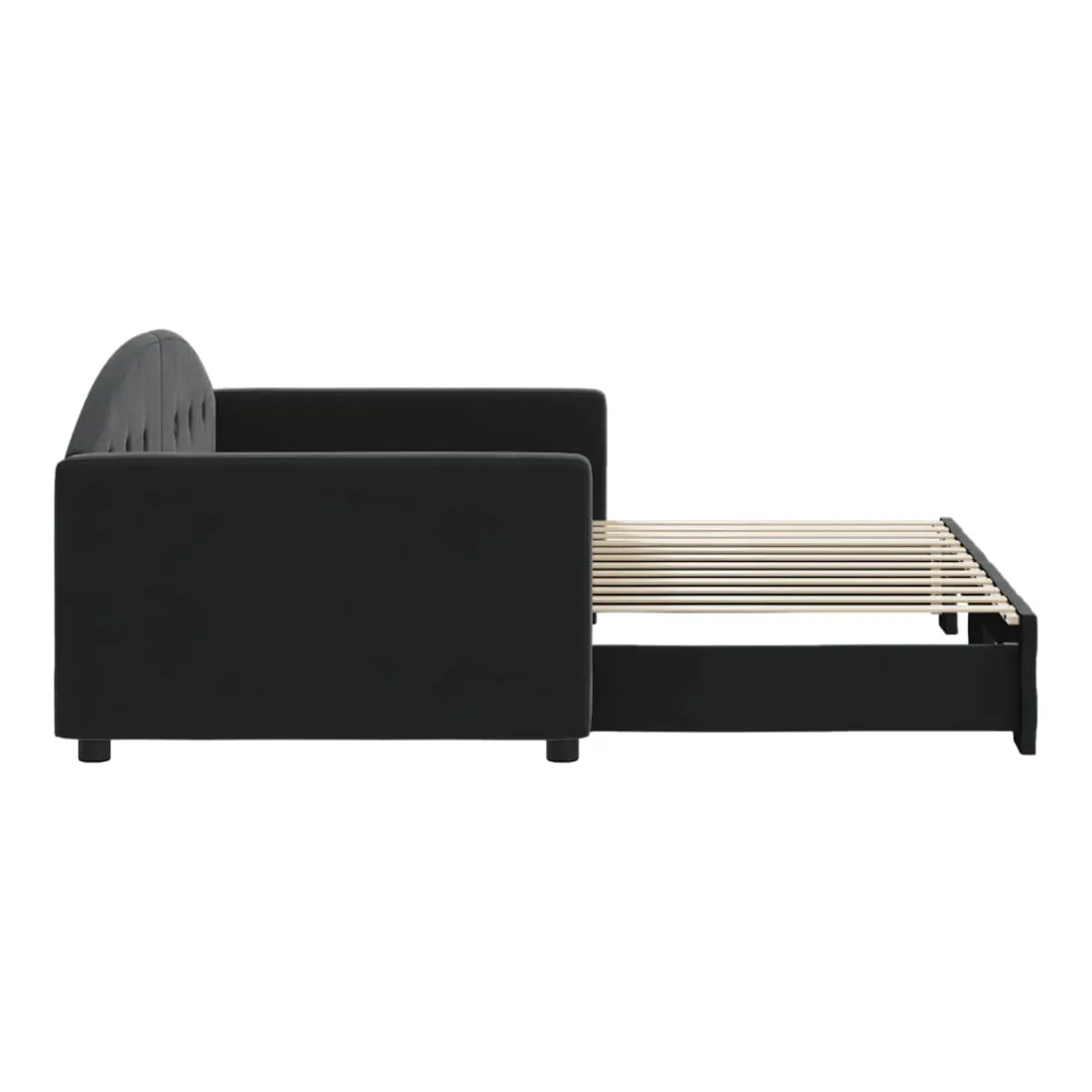 Ce lit de repos 2 en 1 avec lit gigogne, servant à la fois de canapé et de lit, constitue un supplément pratique et accrocheur à votre salon ou chambre à coucher. Lit de repos polyvalent : le canapé-lit fonctionne comme un canapé pendant la journée et se transforme facilement en lit double la nuit en retirant le lit gigogne, offrant une solution pratique pour accueillir des invités et maximiser l'espace.Velours doux et construction solide : ce canapé-lit a un cadre robuste en bois et en métal et est recouvert de velours doux et confortable.Design moderne : le canapé-lit a un design moderne qui présente des lignes épurées, un aspect minimaliste, ainsi que de la lumière naturelle, et ajoutera un style moderne à votre intérieur ! Bon à savoir :Les matelas ne sont pas inclus avec ce lit. Nous proposons une sélection variée de matelas. Vous pouvez consulter notre boutique pour trouver les matelas assortis.