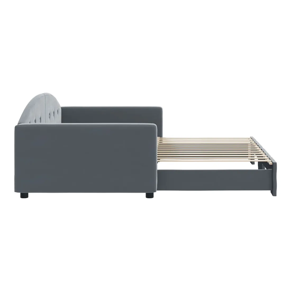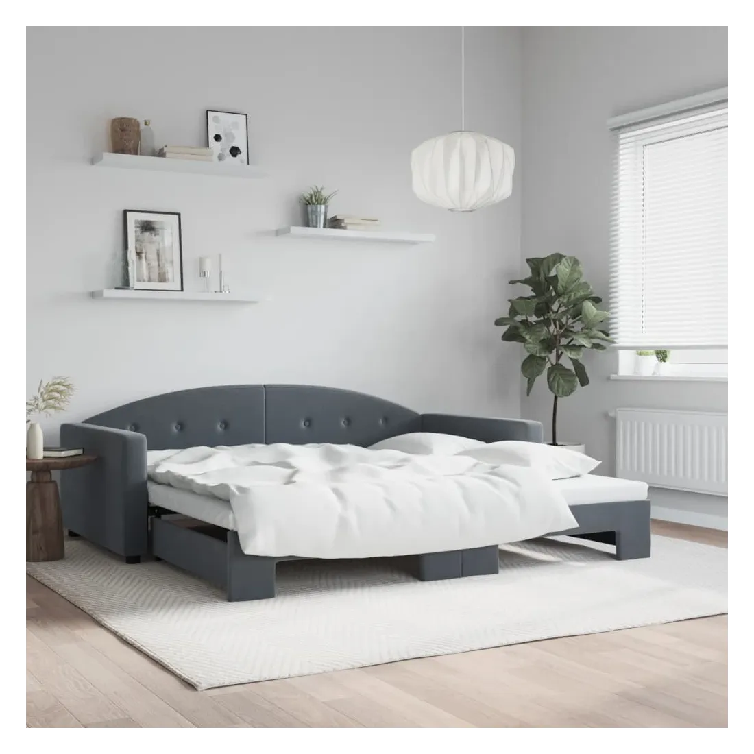 Ce lit de repos 2 en 1 avec lit gigogne, servant à la fois de canapé et de lit, constitue un supplément pratique et accrocheur à votre salon ou chambre à coucher. Lit de repos polyvalent : le canapé-lit fonctionne comme un canapé pendant la journée et se transforme facilement en lit double la nuit en retirant le lit gigogne, offrant une solution pratique pour accueillir des invités et maximiser l'espace.Velours doux et construction solide : ce canapé-lit a un cadre robuste en bois et en métal et est recouvert de velours doux et confortable.Design moderne : le canapé-lit a un design moderne qui présente des lignes épurées, un aspect minimaliste, ainsi que de la lumière naturelle, et ajoutera un style moderne à votre intérieur ! Bon à savoir :Les matelas ne sont pas inclus avec ce lit. Nous proposons une sélection variée de matelas. Vous pouvez consulter notre boutique pour trouver les matelas assortis.